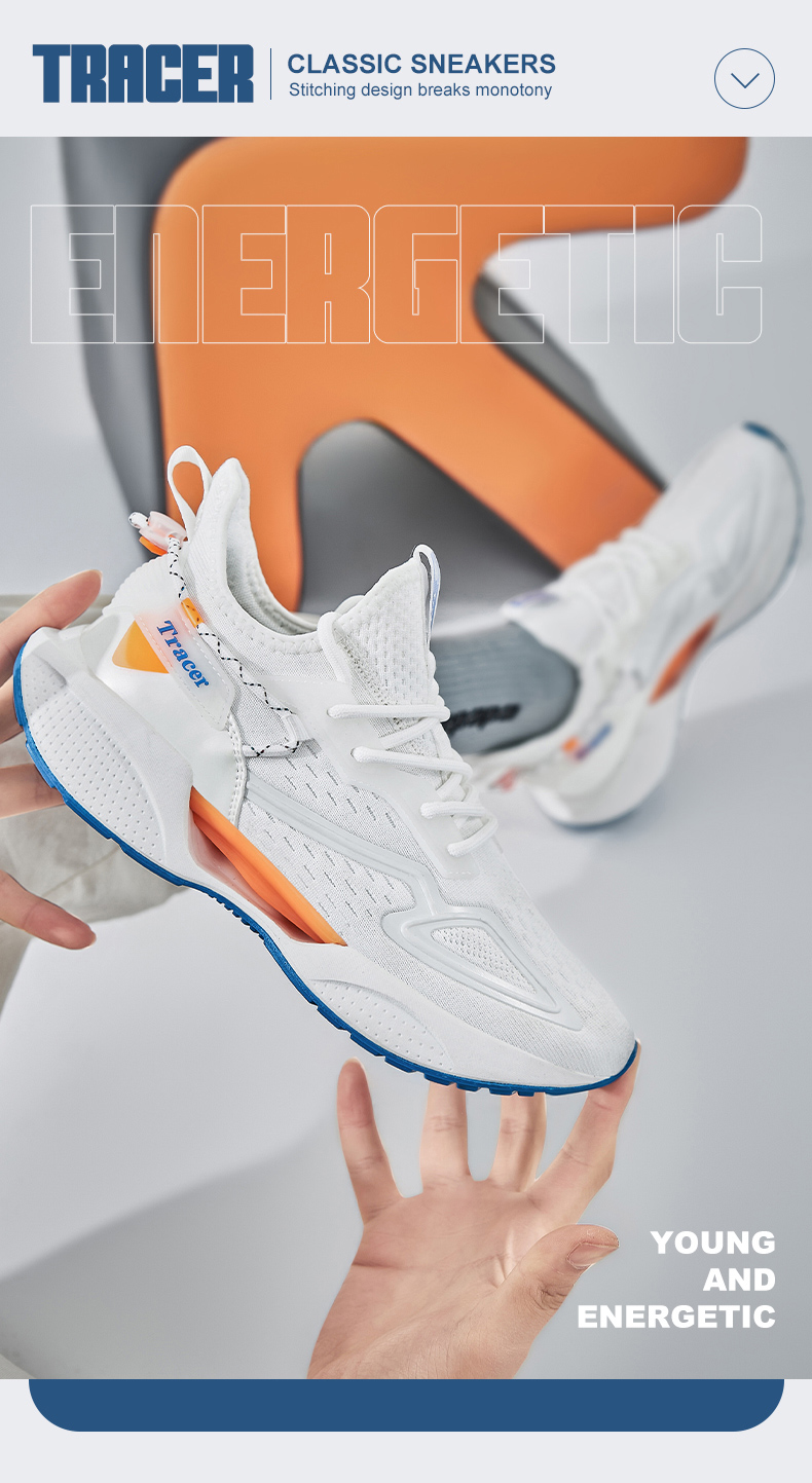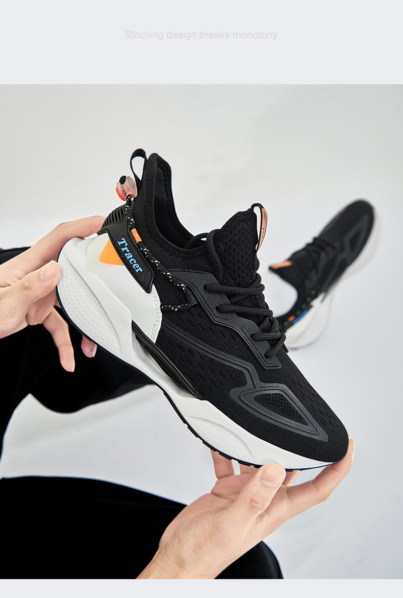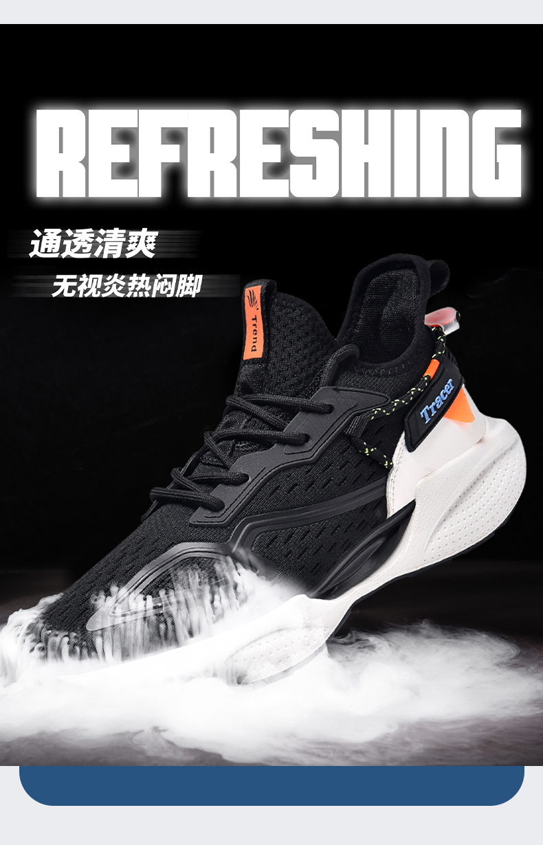 【男士飞织透气休闲鞋】舒适时尚加棉护踝鞋口 飞织+滴塑材质脚感轻盈