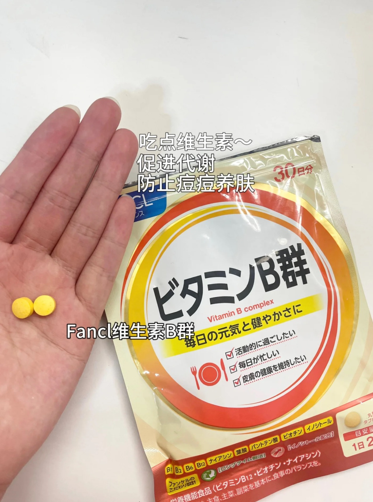 熬夜党、养生达人冲【日本本土版FANCL维生素B 新版】营养师推荐!每天2粒全面补充身体所需维生素,皮肤暗沉粗糙爱长口腔溃疡