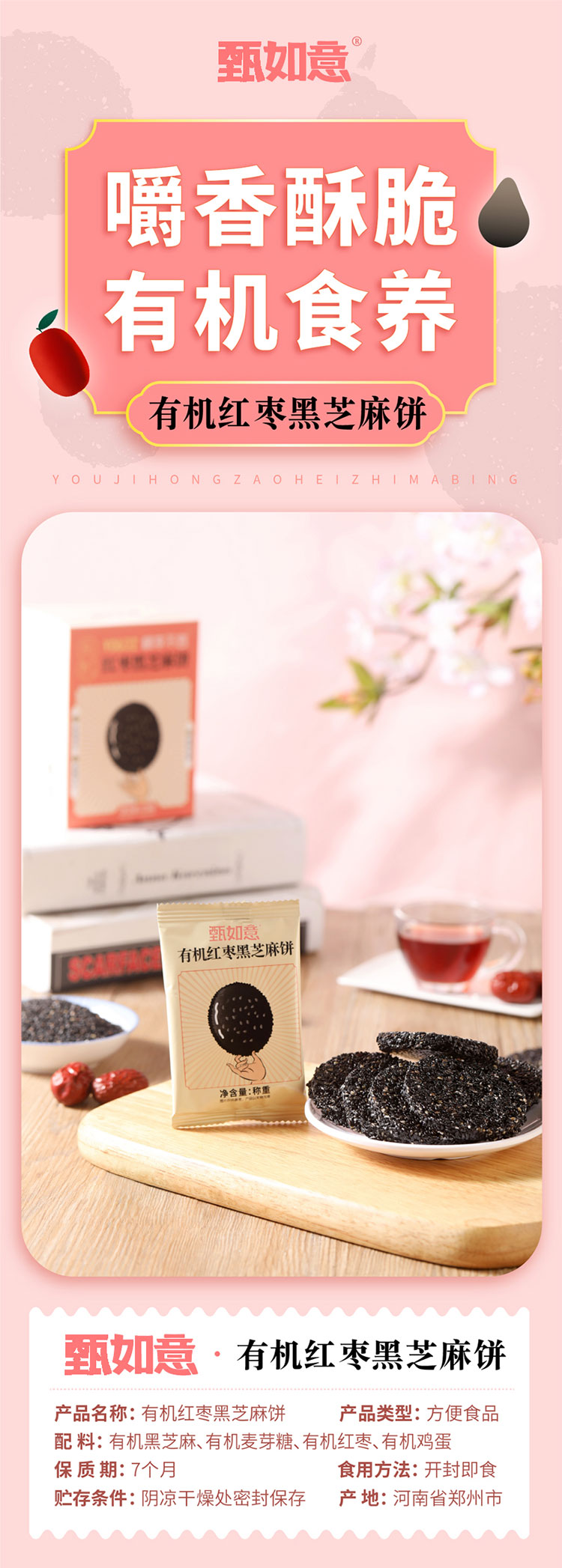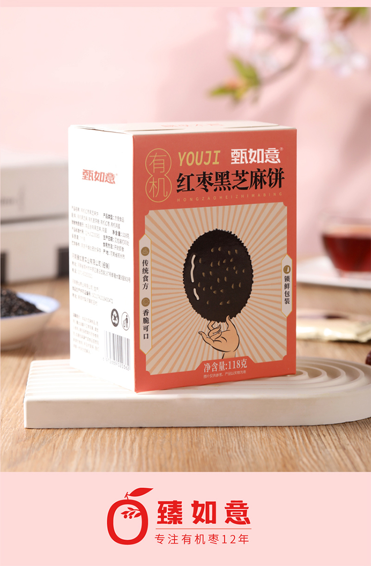 【厂商直发】有机红枣黑芝麻饼118g全有机饼干孕妇零食高钙零食包邮