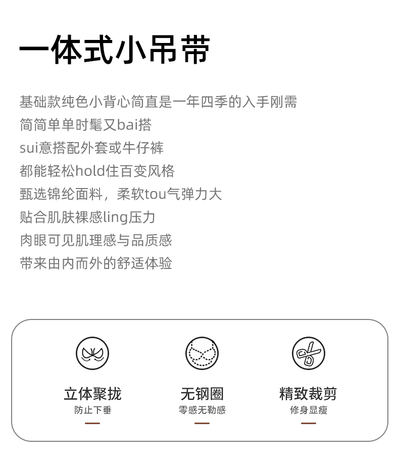拥抱云朵「DANMO云锦冰丝吊带背心」3D立体版型更薄更透气 高弹双肩带 勾勒性感美肩