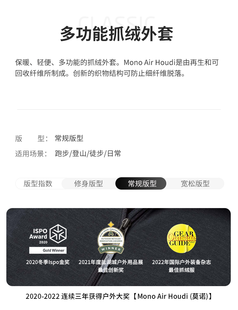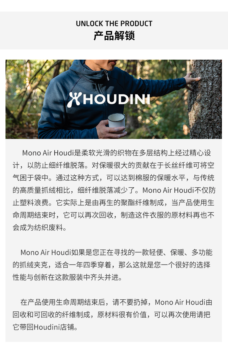 HOUDINI胡丁尼 Mono Air Houdi莫诺户外秋季男保暖连帽抓绒衣外套 220714