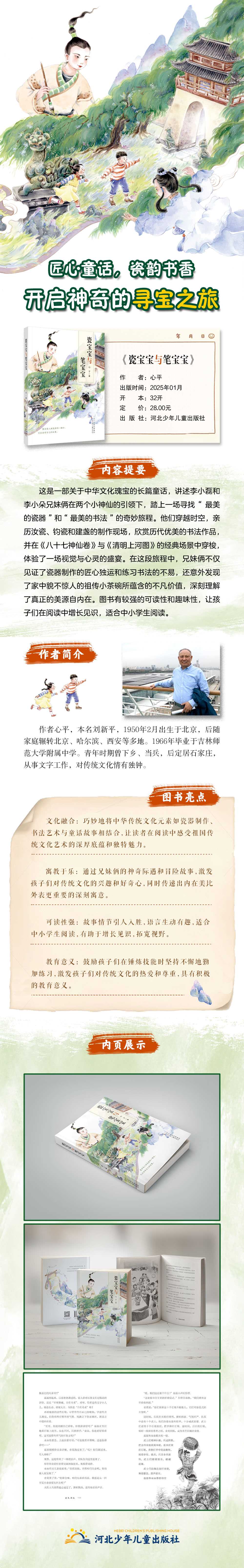 1.文化融合:巧妙地将中华传统文化元素如瓷器制作、书法艺术与童话故事相结合,让读者在阅读中感受祖国传统文化艺术的深厚底蕴和独特魅力。2.寓教于乐:通过兄妹俩的神奇际遇和冒险故事,激发孩子们对传统文化的兴趣和好奇心,同时传递出内在美比外表更重要的深刻寓意。3.可读性强:故事情节引人入胜,语言生动有趣,适合中小学生阅读,有助于增长见识,拓宽视野。4.教育意义:鼓励孩子们在锤炼技能时坚持不懈地勤加练习,激发孩子们对传统文化的热爱和尊重,具有积极的教育意义。