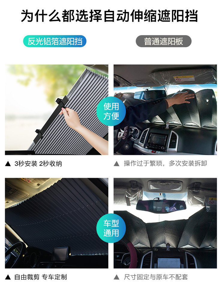〖爱车防晒必备〗自动伸缩遮阳挡 强烈反光铝膜 汽车防晒隔热遮阳挡自动伸缩折叠前挡风遮阳车用窗帘遮光帘挡光板
