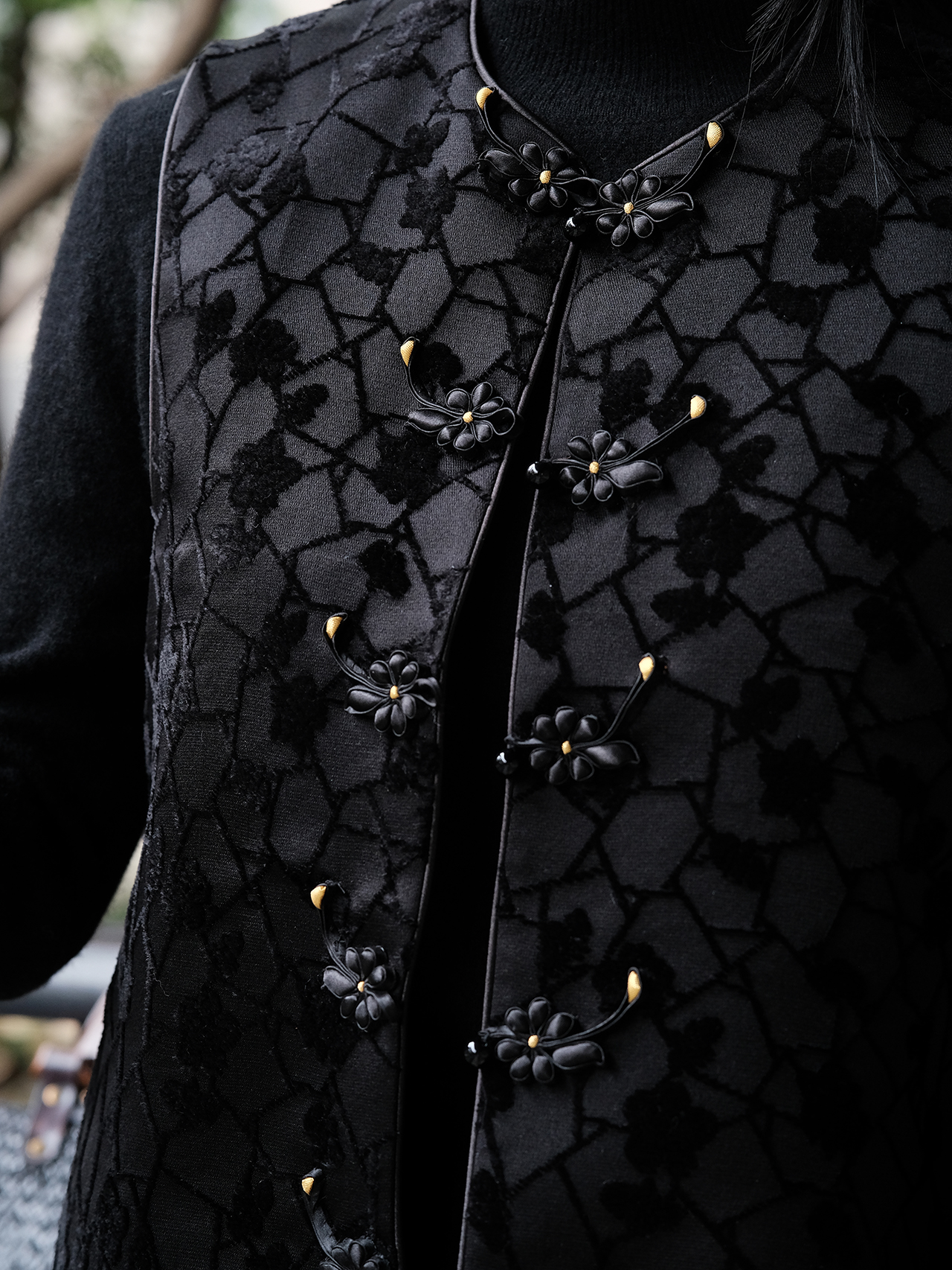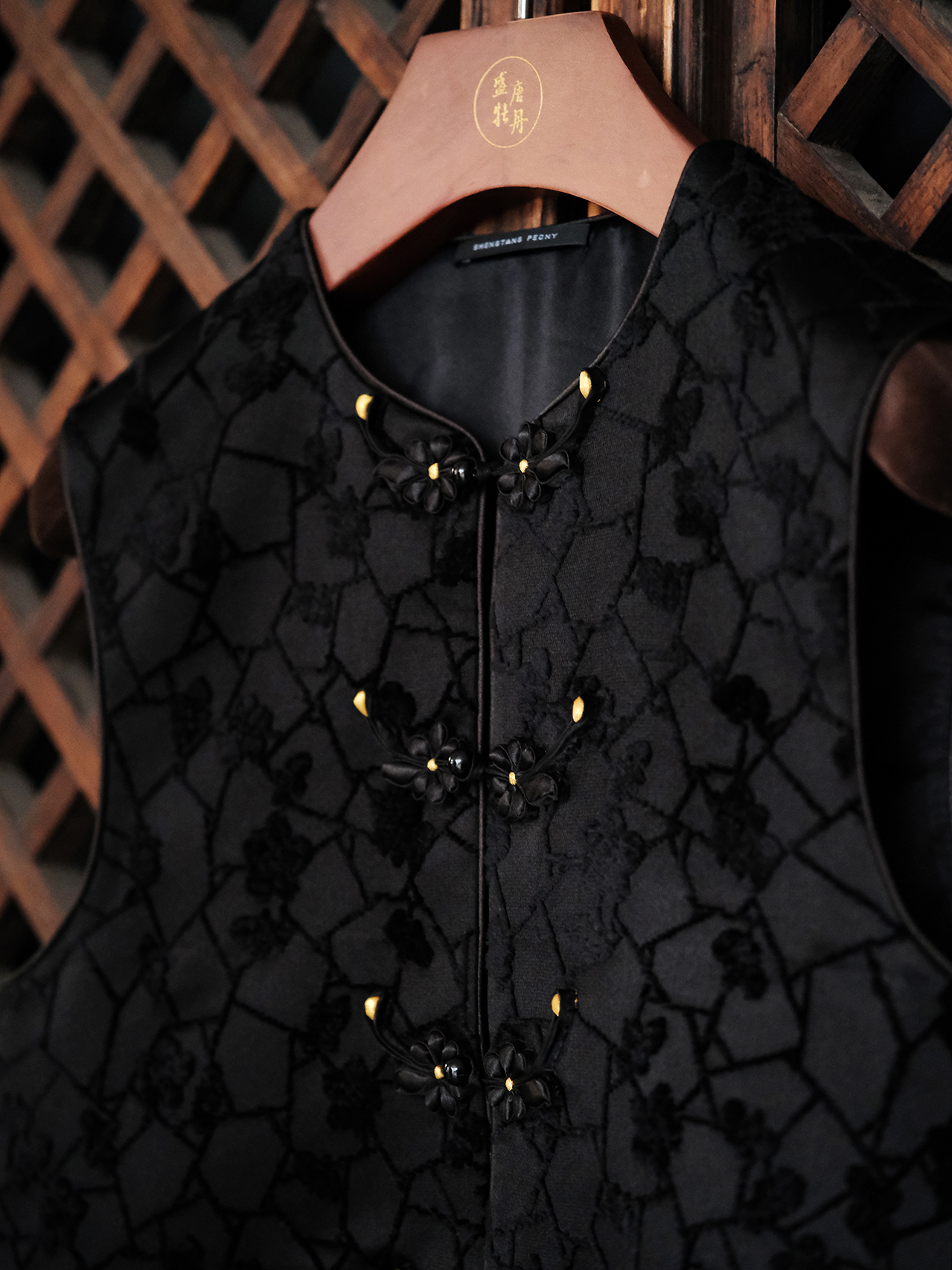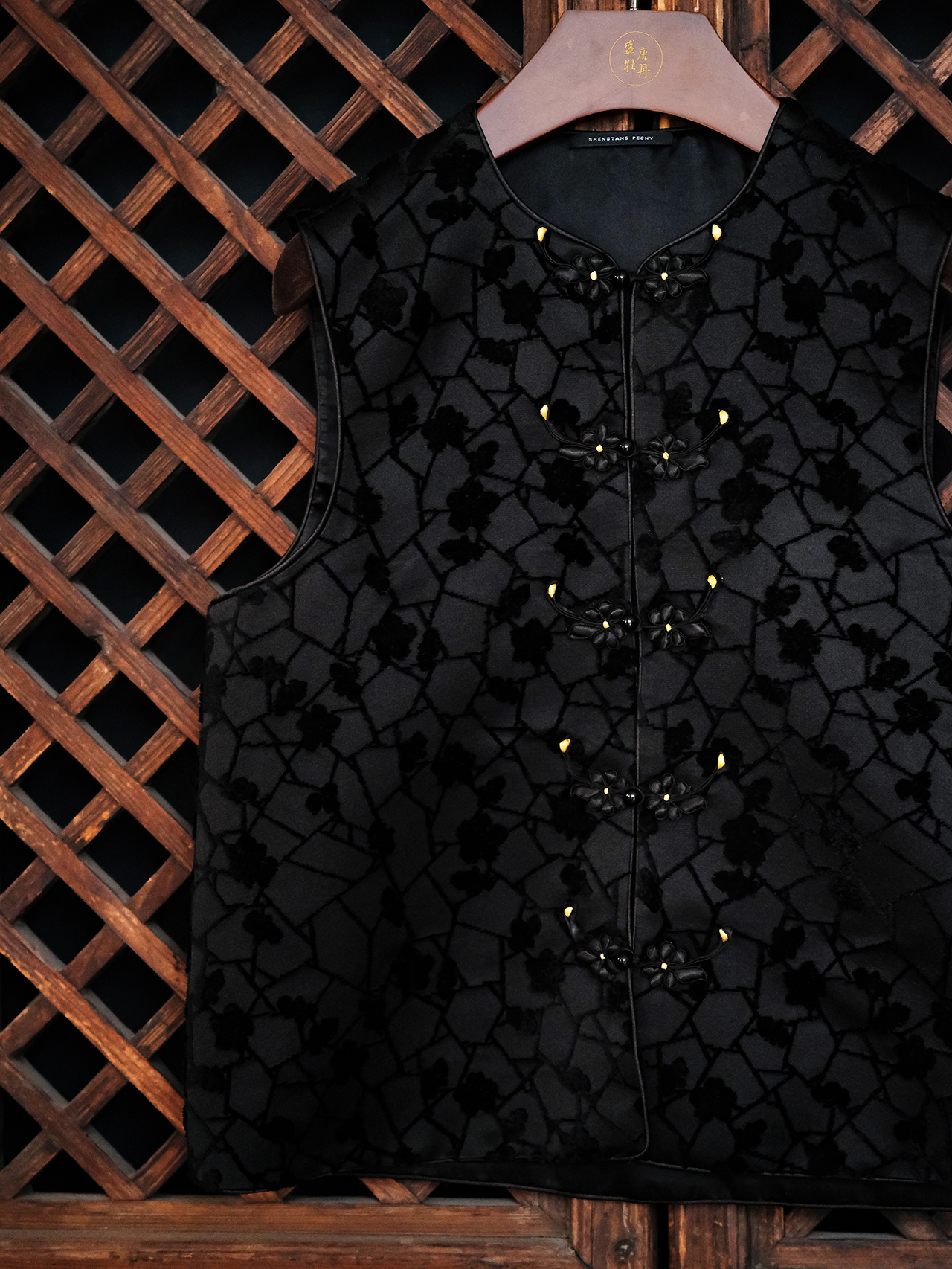 盛唐牡丹| 冰裂梅花纹漳缎对襟马甲