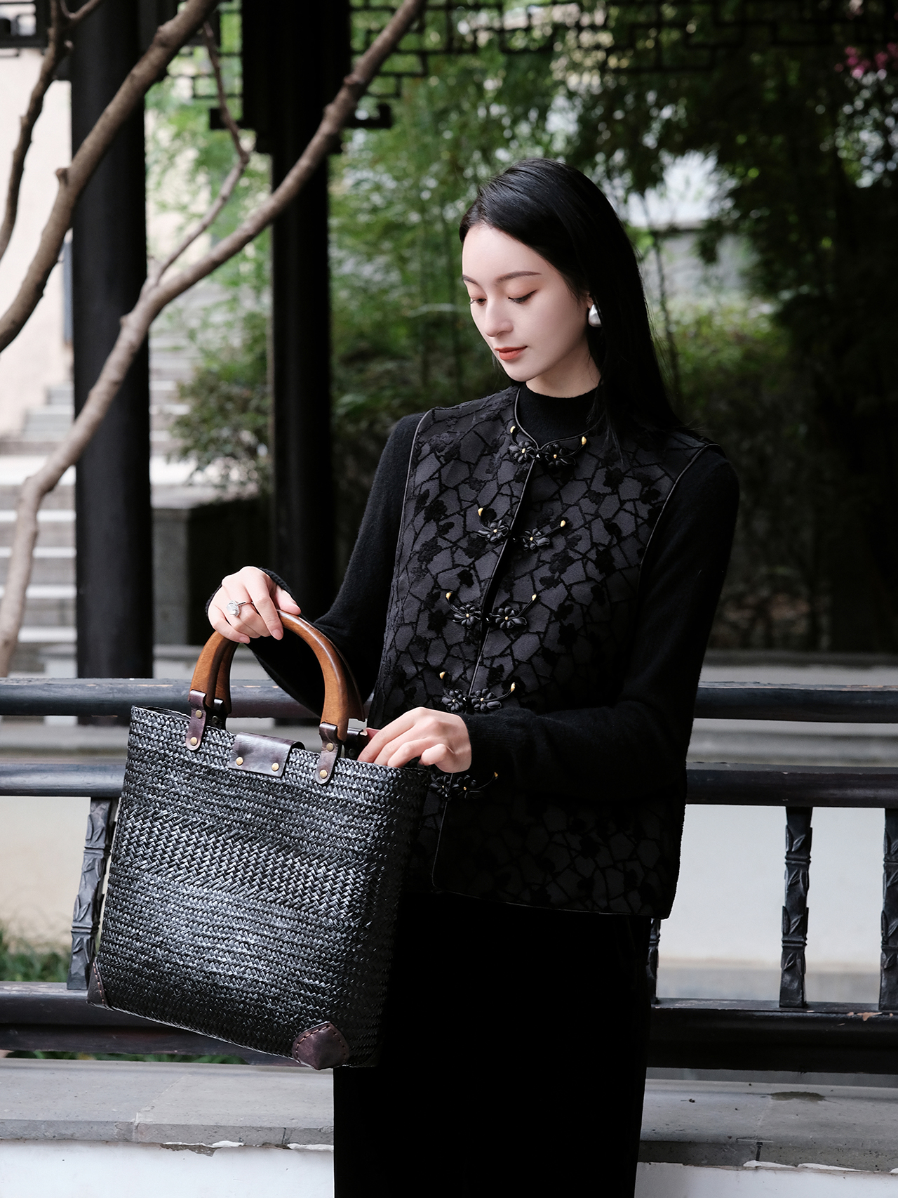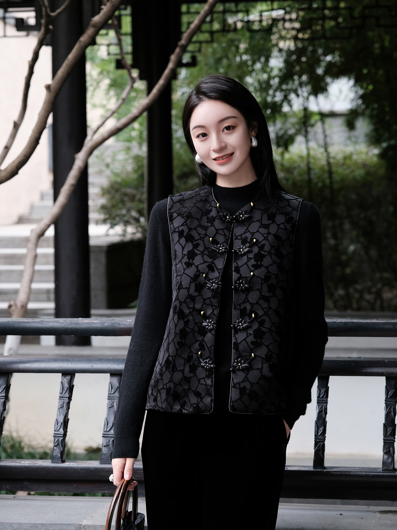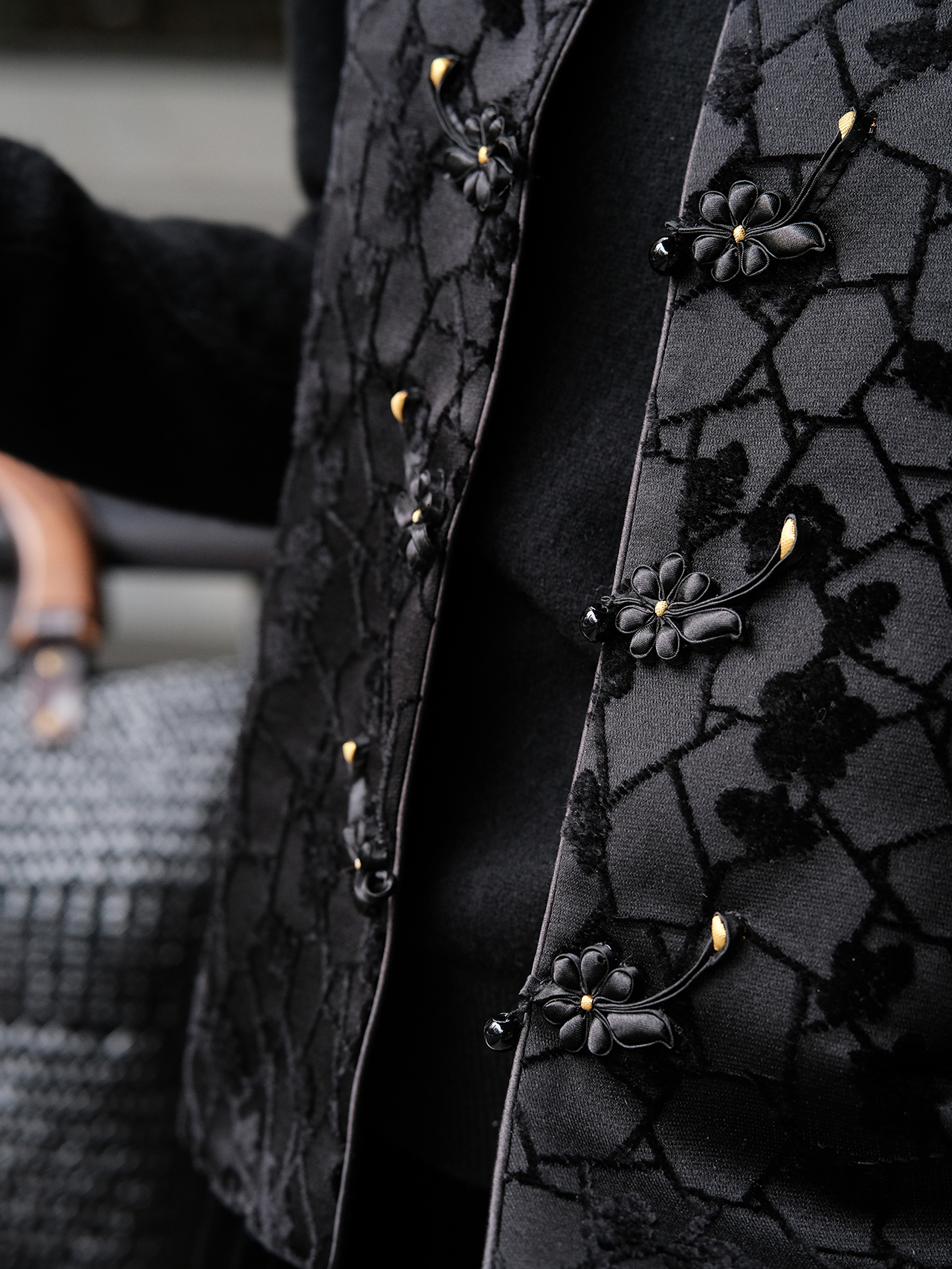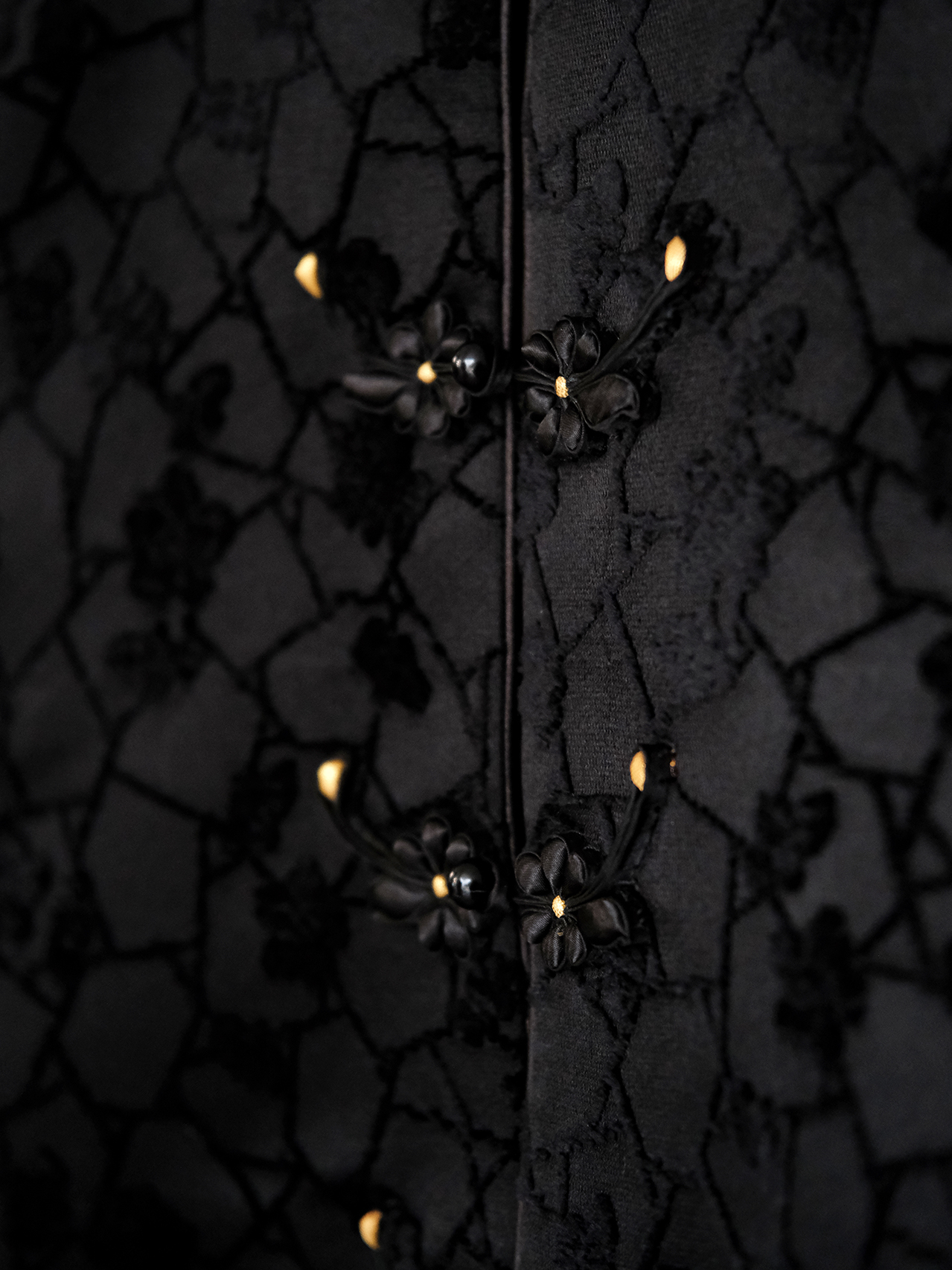 盛唐牡丹| 冰裂梅花纹漳缎对襟马甲
