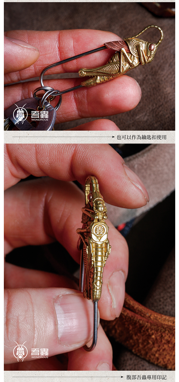 吾蟲-铜蝈蝈别针 昆虫螽斯胸针 钥匙扣汽车挂件个性饰品【官方授权 48小时发货】