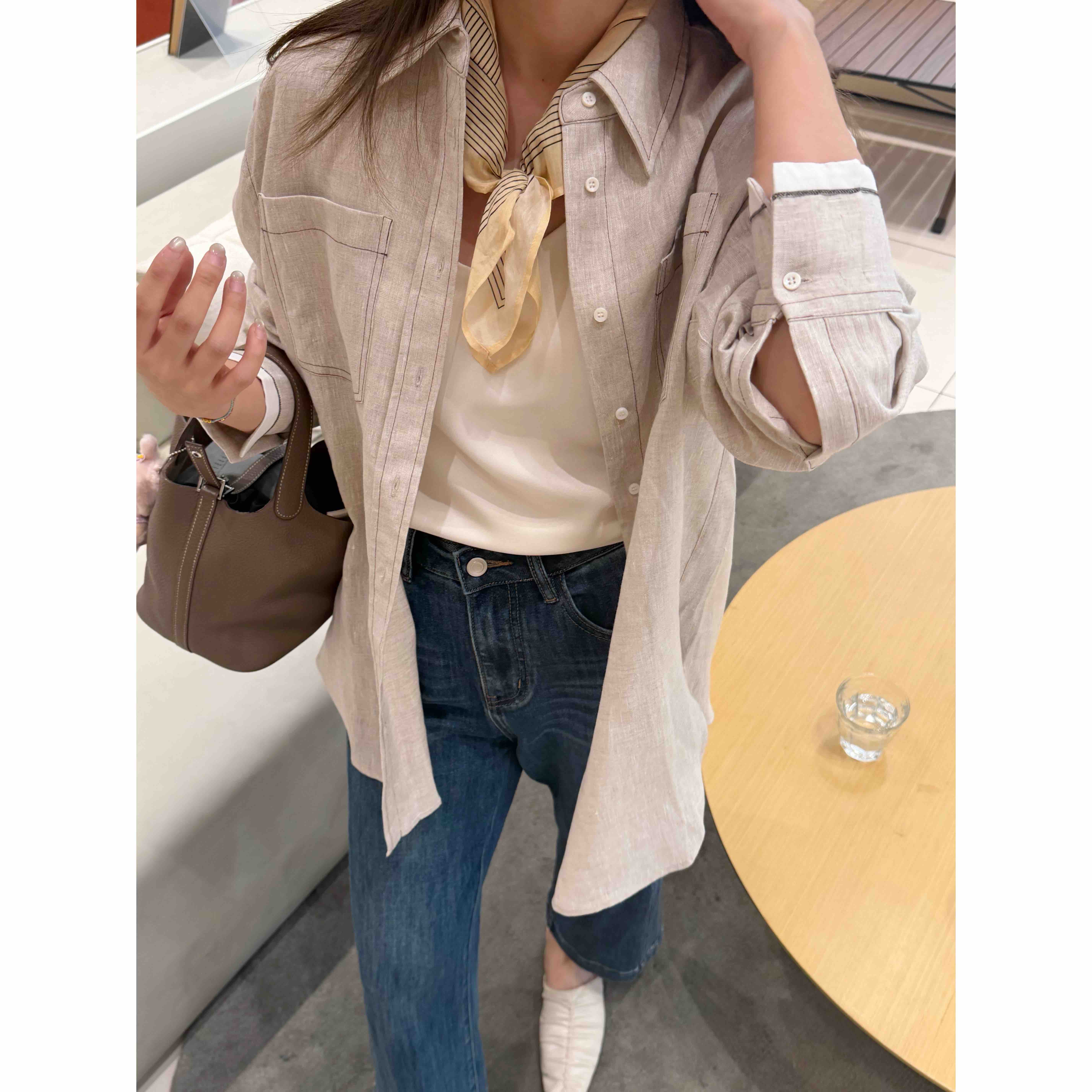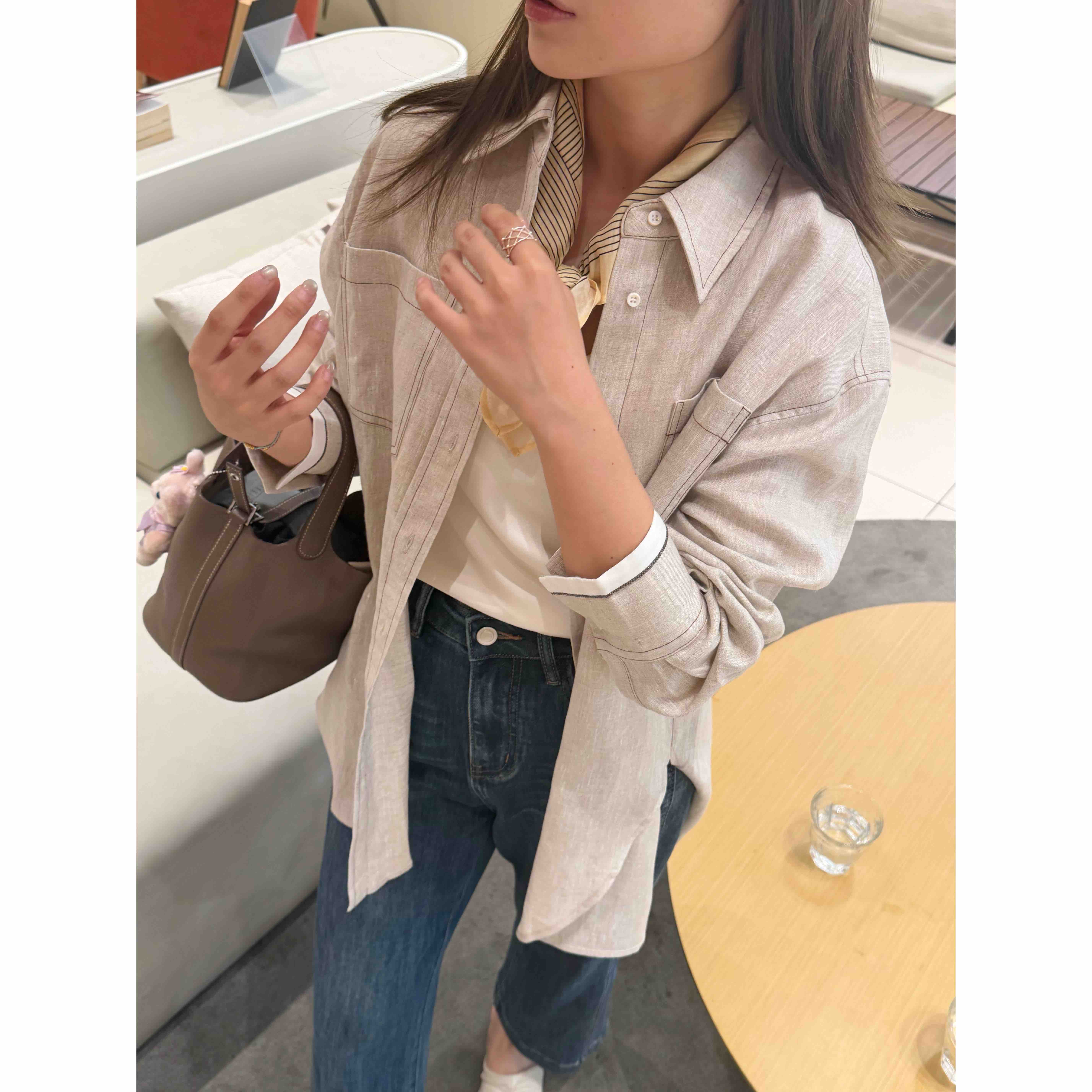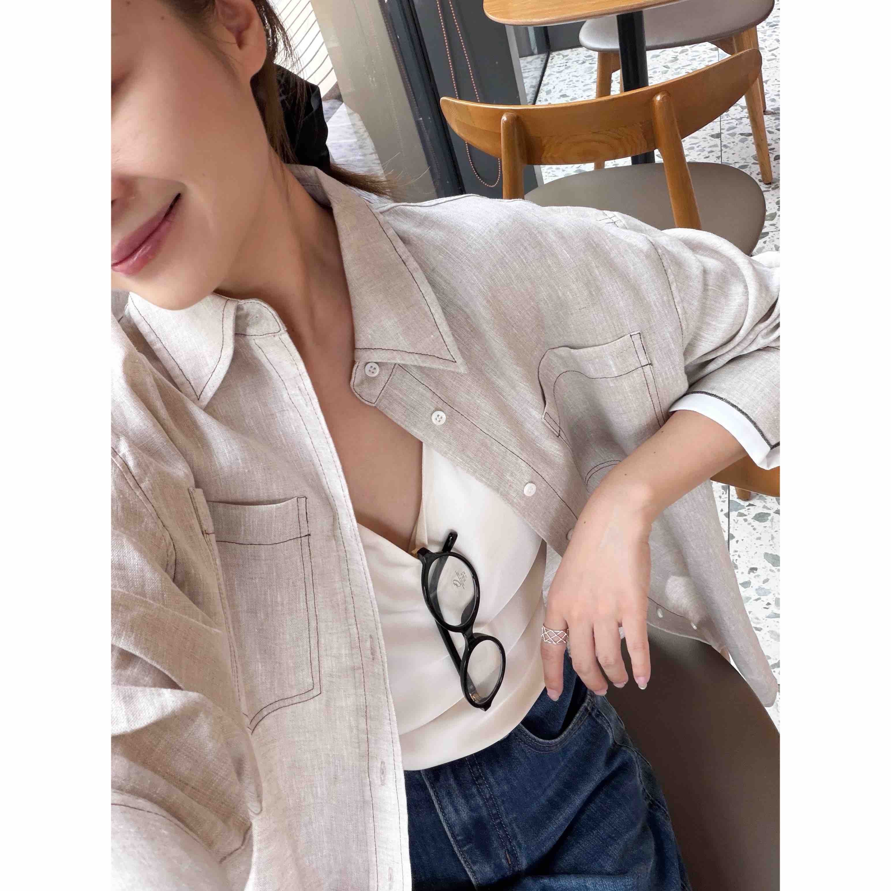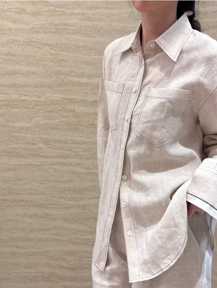 2509402 亚麻 气质长袖衬衫