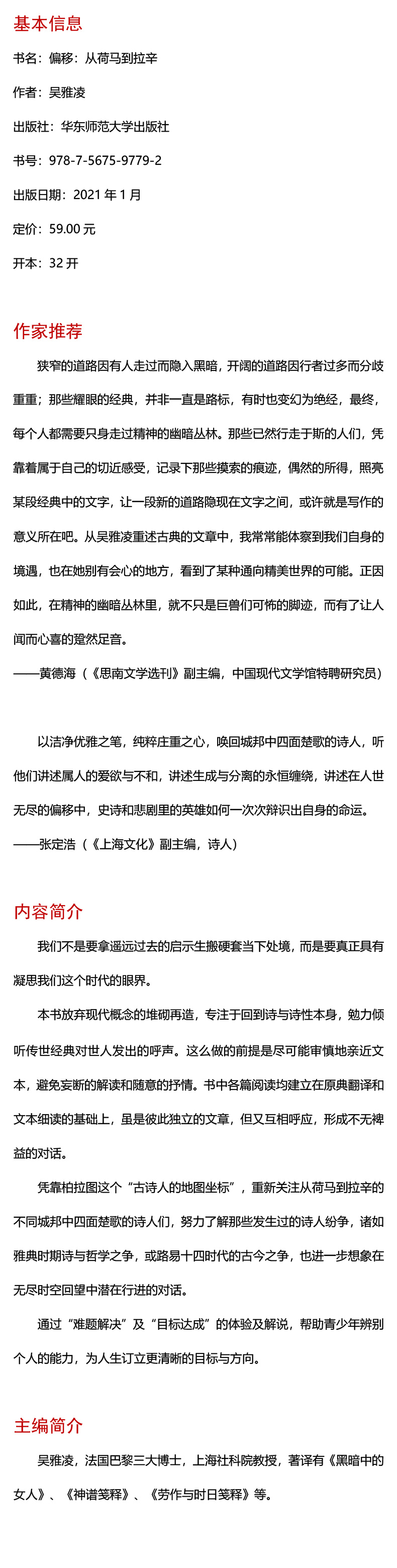 偏移 从荷马到拉辛 谜文库 吴雅凌著 古希腊神话诗 诗与哲学之争 古今之争 西方文学史 正版 华东师范大学出版社