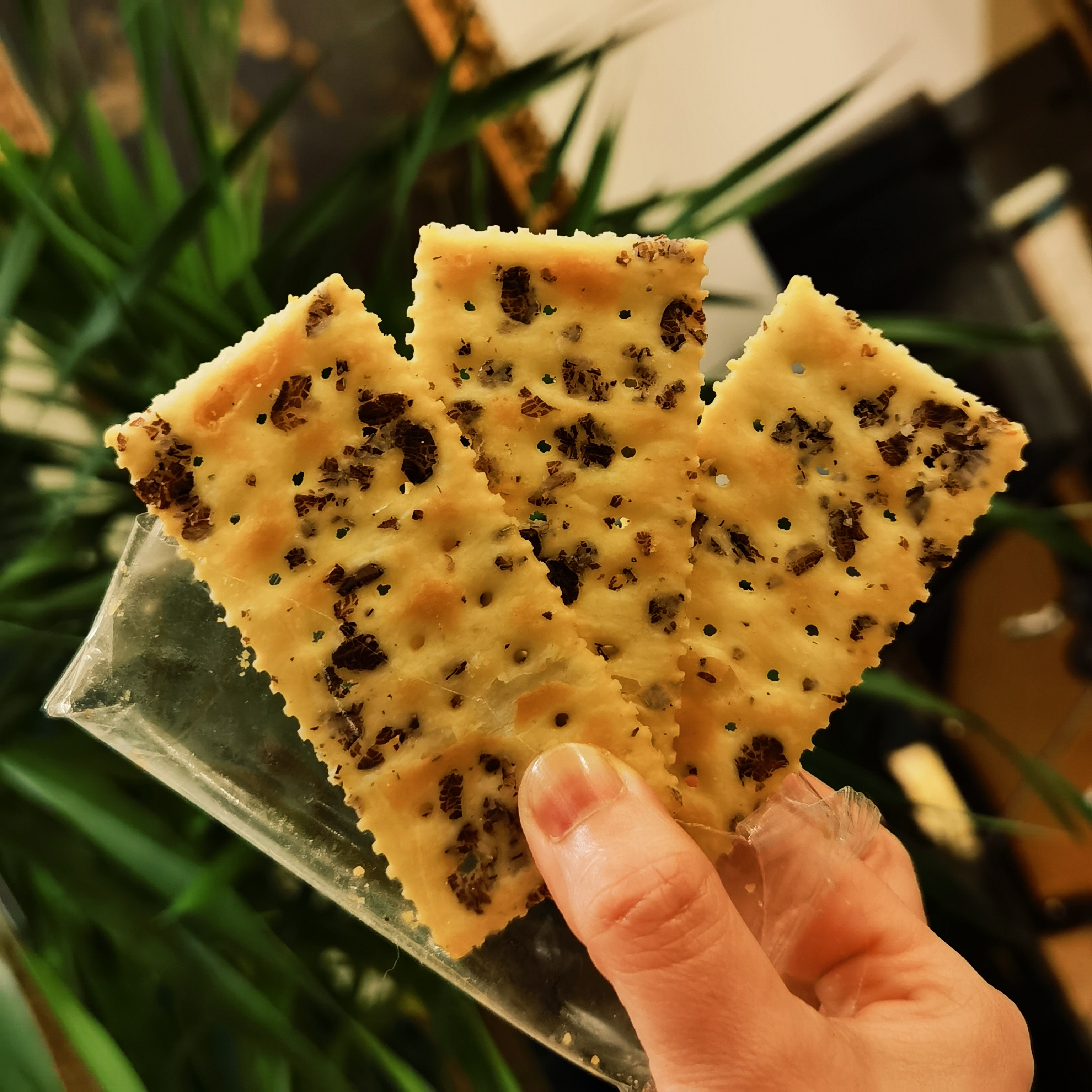 又有好吃的小饼干了!黑麦海盐苏打饼,我觉得比岩烧咖啡饼干还要好吃,是咸的,更附合我的口味!而且还有肉眼可见的黑麦片,使饼干拥有了大理石般的纹理,注定不平凡呀!