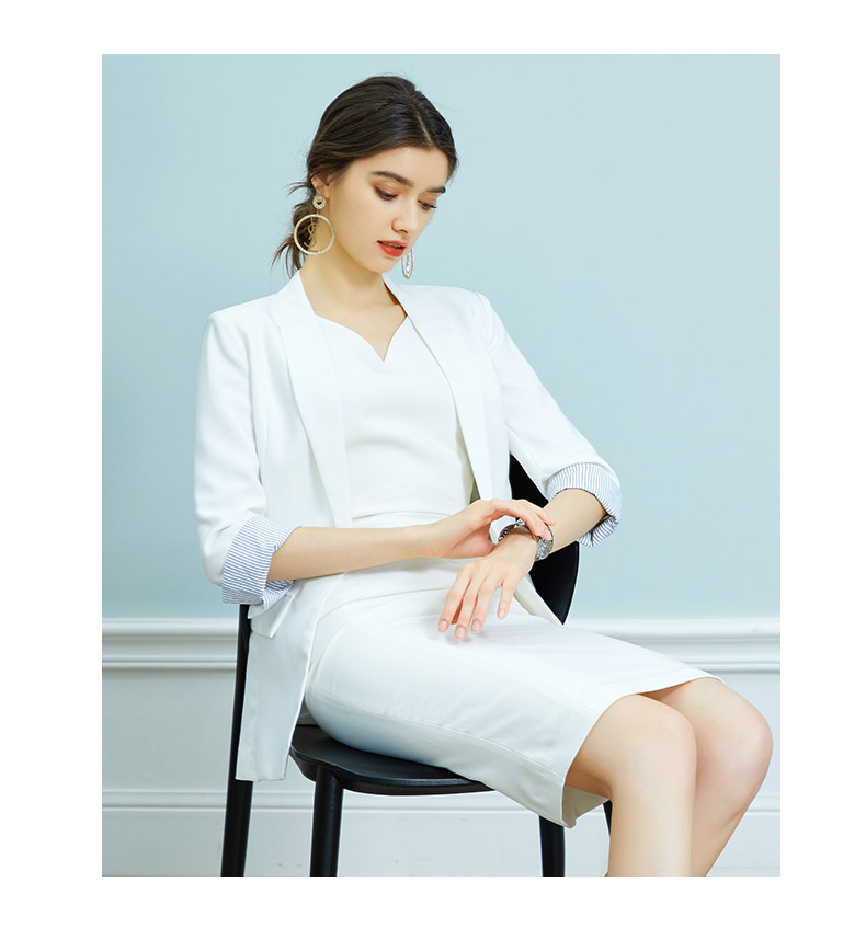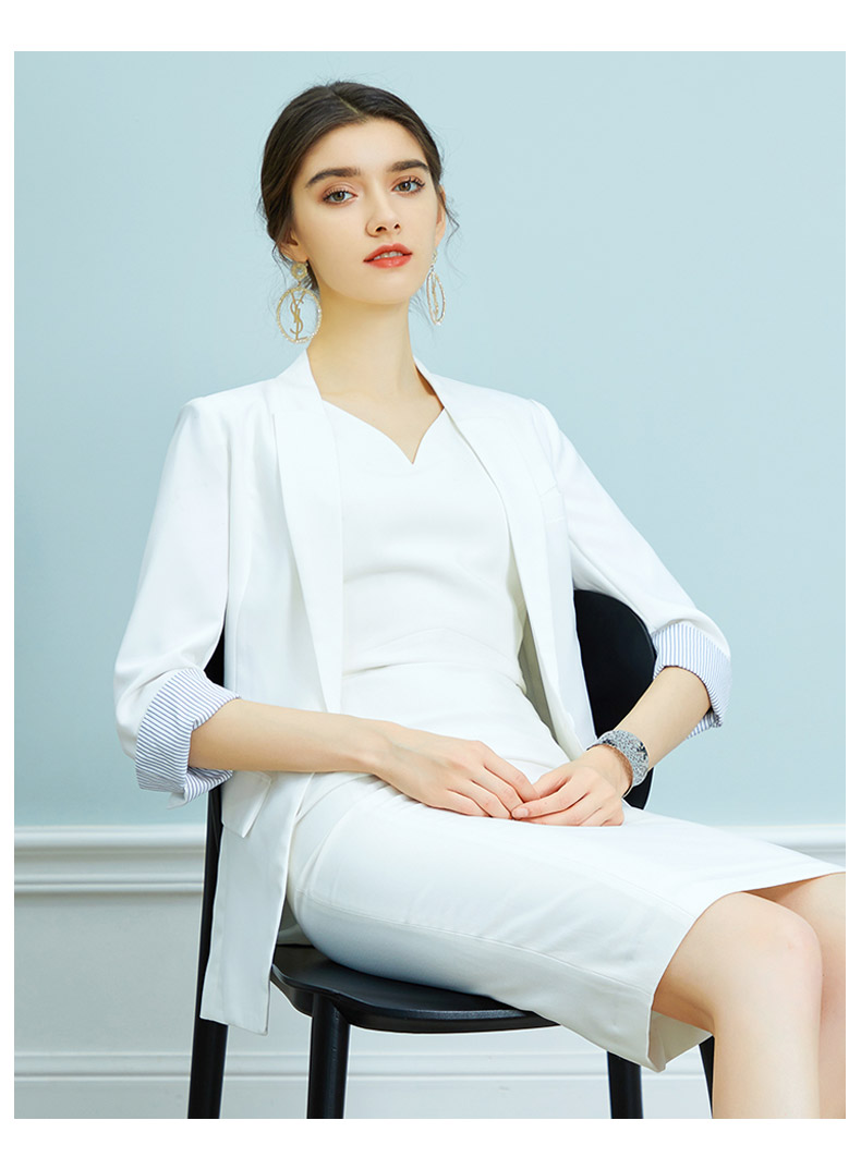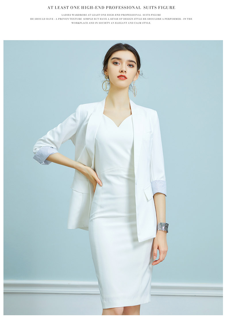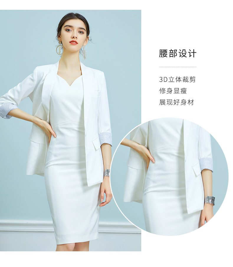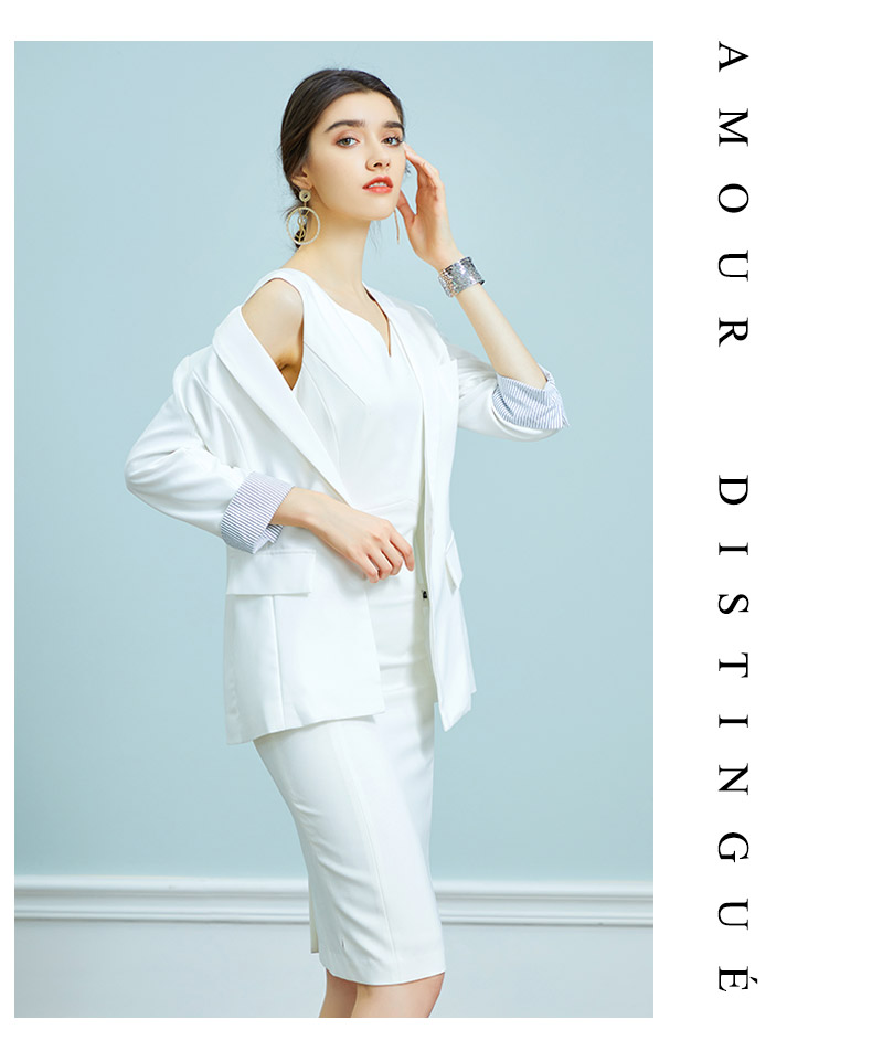 AD时尚修身名媛无袖白色连衣裙西装外套套装OL通勤职业装气质春秋