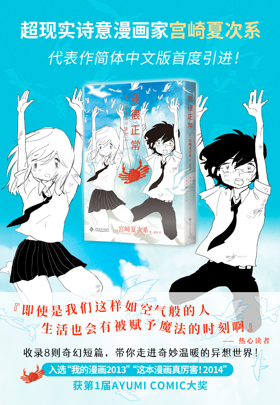 《我很正常》是漫画家宫崎夏次系短篇集代表作,收录8则奇幻浪漫的故事。被困高塔的少女、痴迷玩偶的父亲、按照模板生活的夫妻……这些故事穿梭于异常和日常之间,既有残酷的诗意,又散发着温柔而清新的气息。