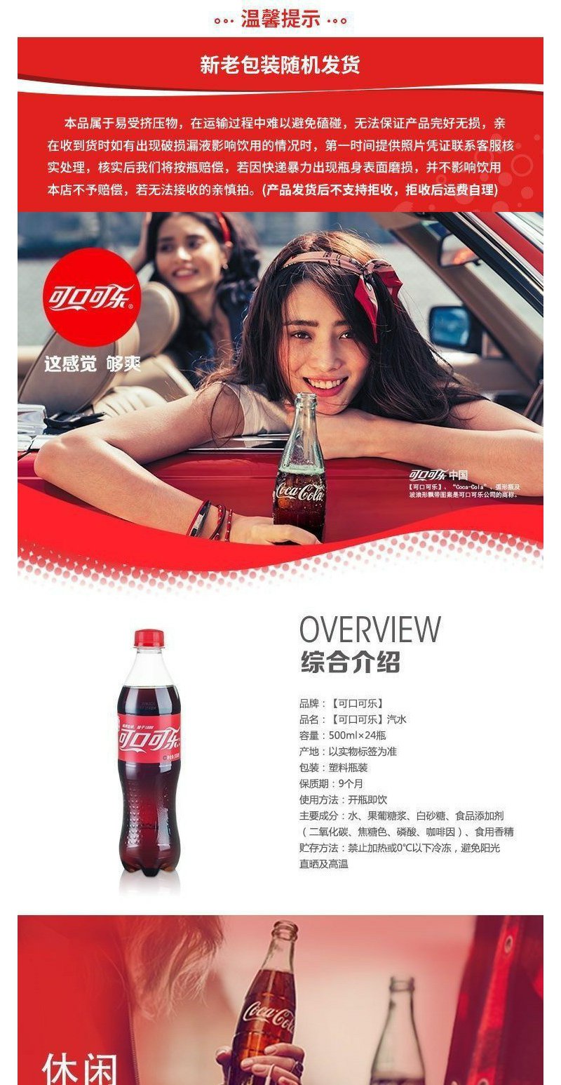 可口可乐经典瓶500ml*24瓶经典口味碳酸饮料夏日饮品整箱