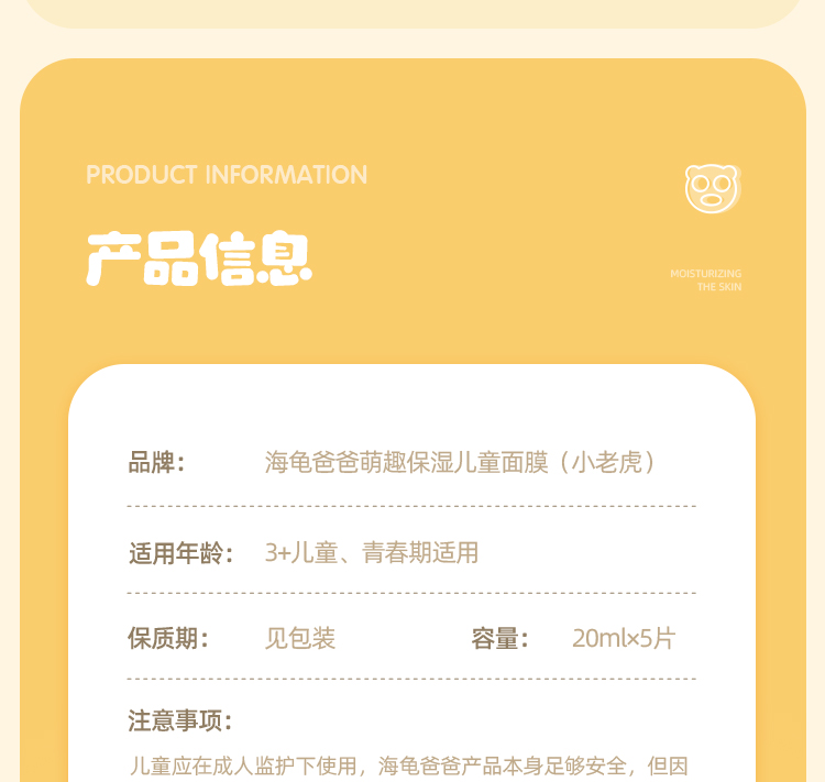 海龟爸爸萌趣保湿儿童面膜(小老虎)