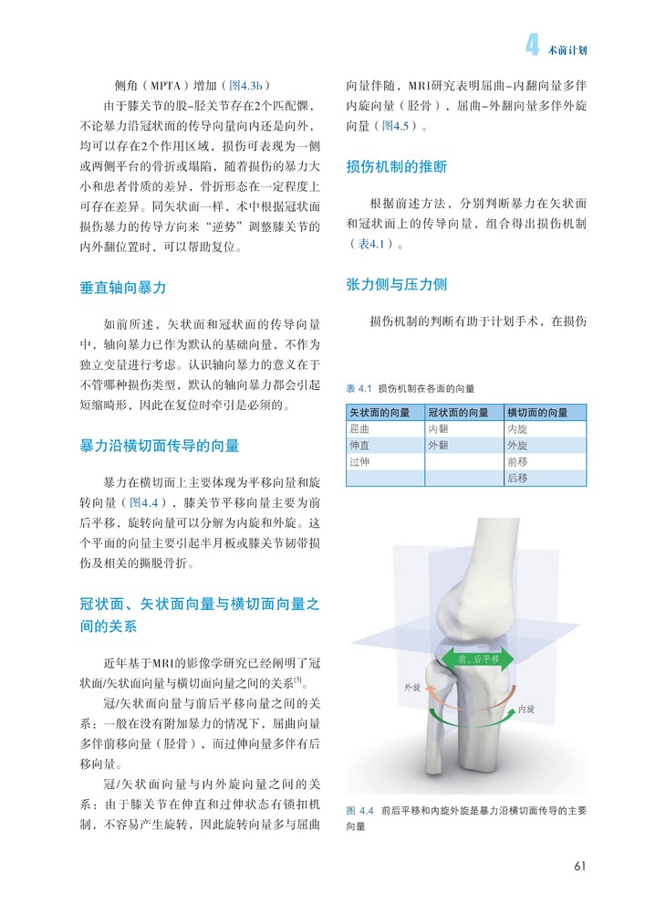 全书分为理念和临床应用两部分。理论部分详细阐述胫骨平台骨折三维形态与治疗之间的关系膝关节周围各韧带和软组织损伤的解剖、生物力学以及诊治理念和技术,手术规划,手术入路,非手术治疗,术后康复等。临床应用部分主要以病例形式体现,分为十二个专题,贴近临床实战,从急诊室的接诊到手术计划、从术中技巧到术后康复,完整地展现了骨折的实际诊治流程。大量的照片和细致的标注,充分展现了术中的技术细节和病例的诊治全程,在“关键点”处配有视频(扫码观看),带给读者真正的临场感。3D打印技术等前沿技术的应用也有详细的介绍。