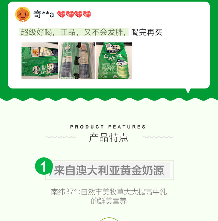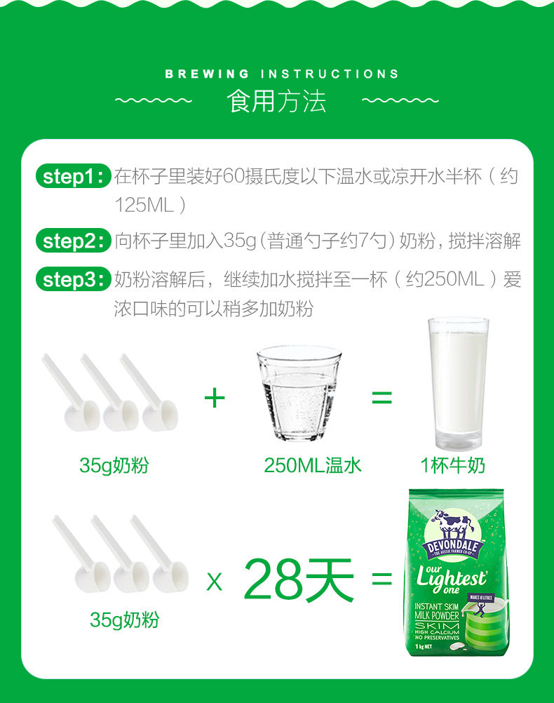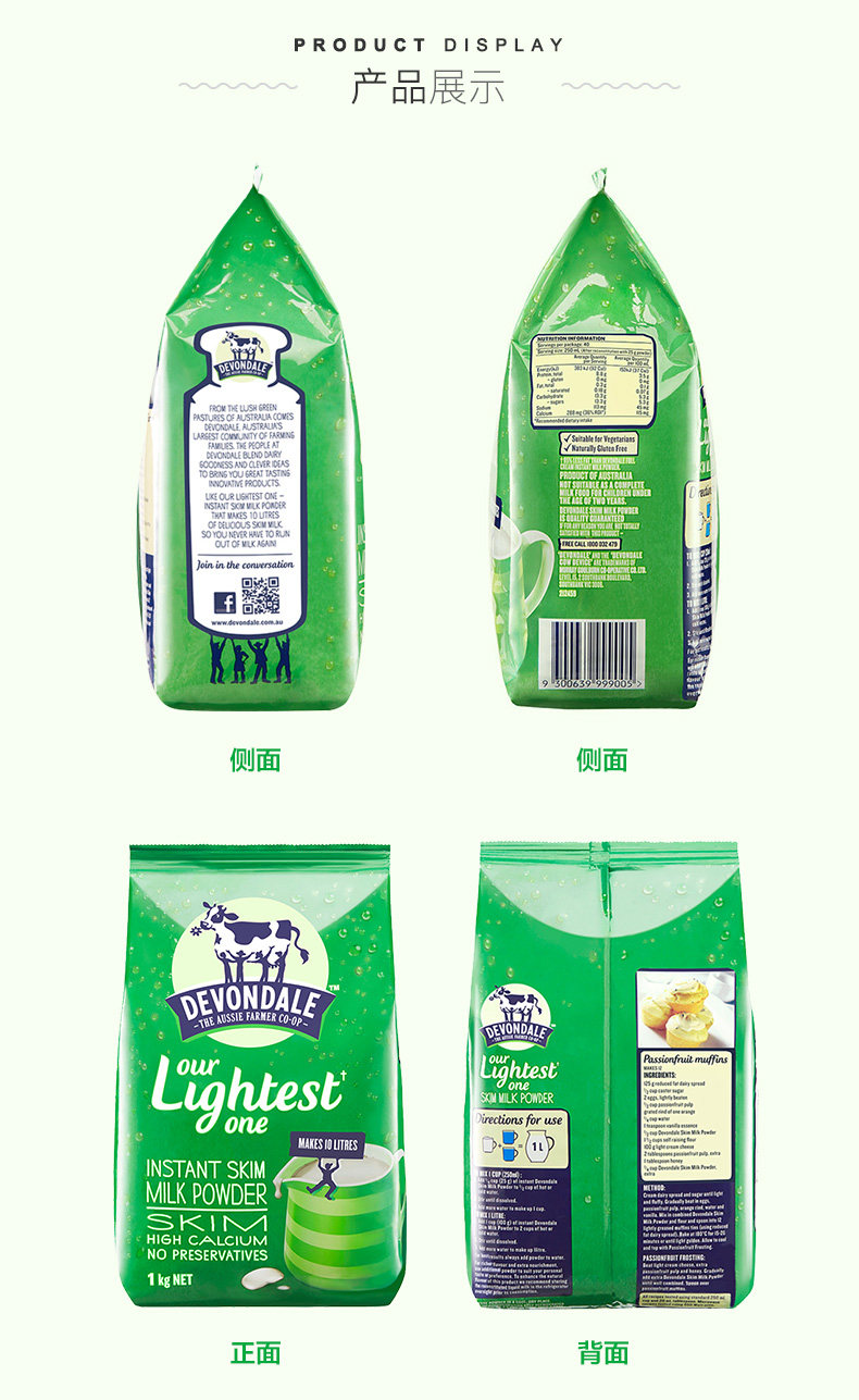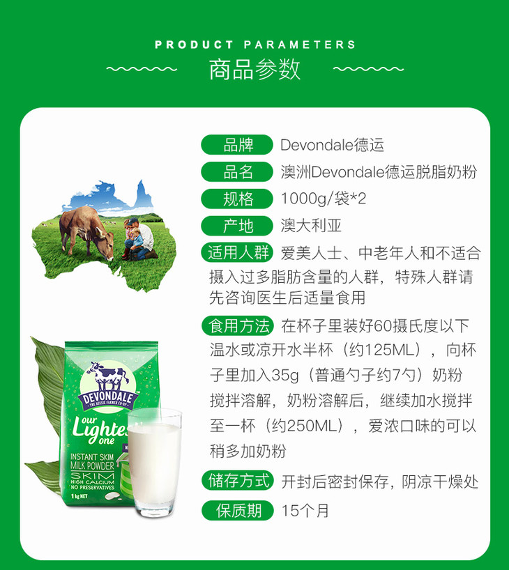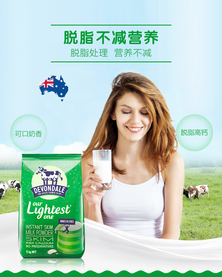 澳洲德运成人脱脂奶粉1kg