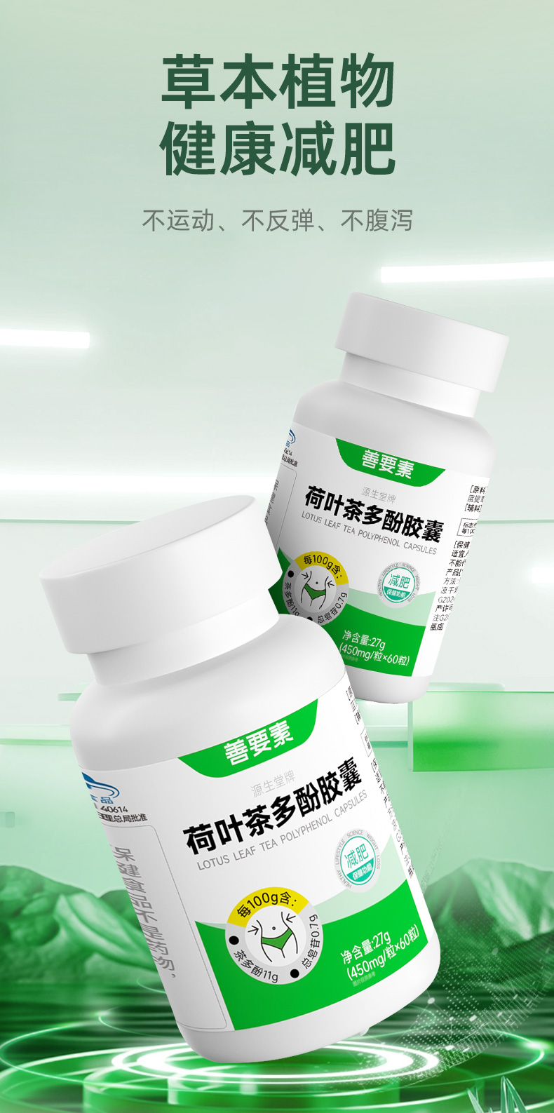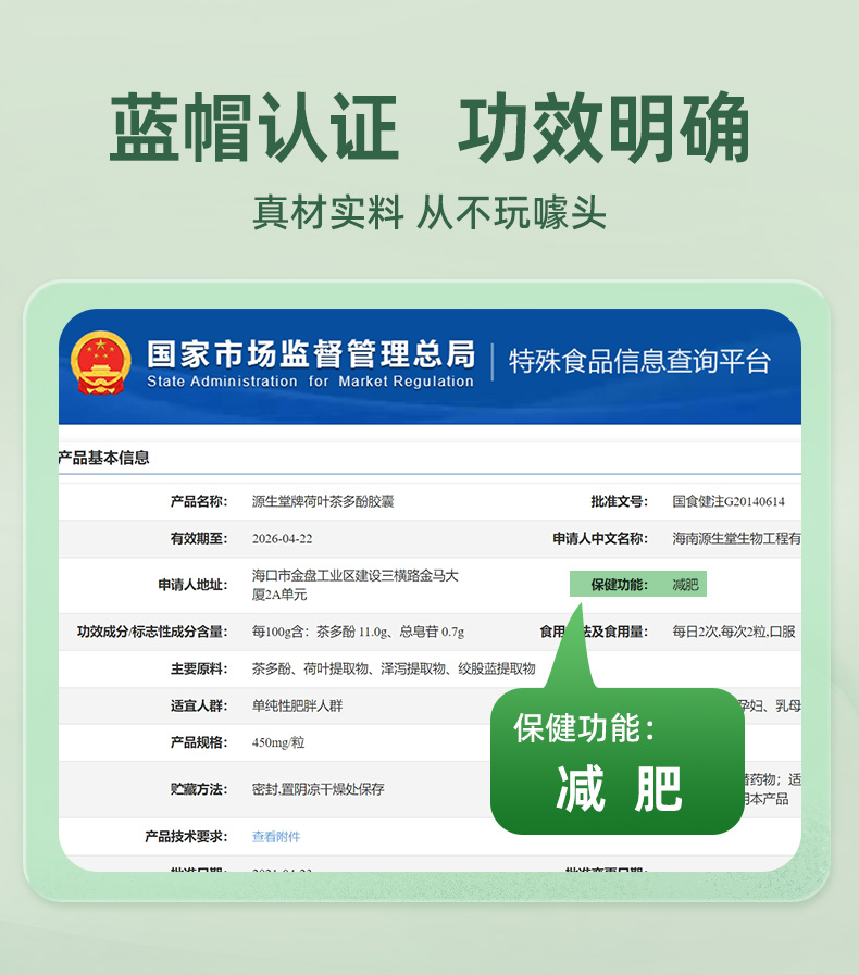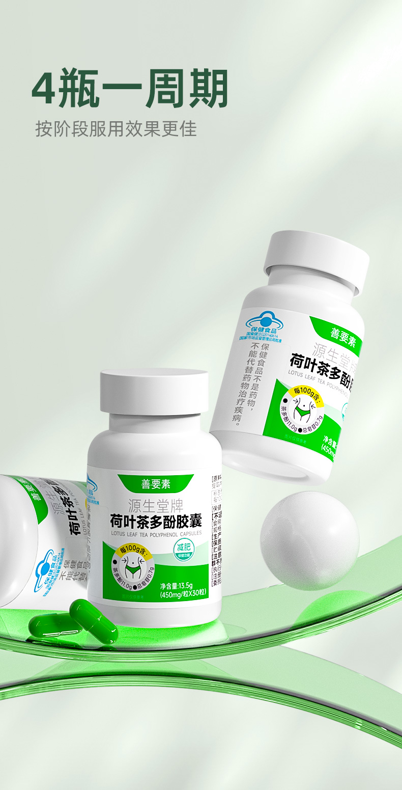 华东医药善要素源生堂荷叶茶多酚胶男女瘦腿廋腰瘦身减脂蓝帽子