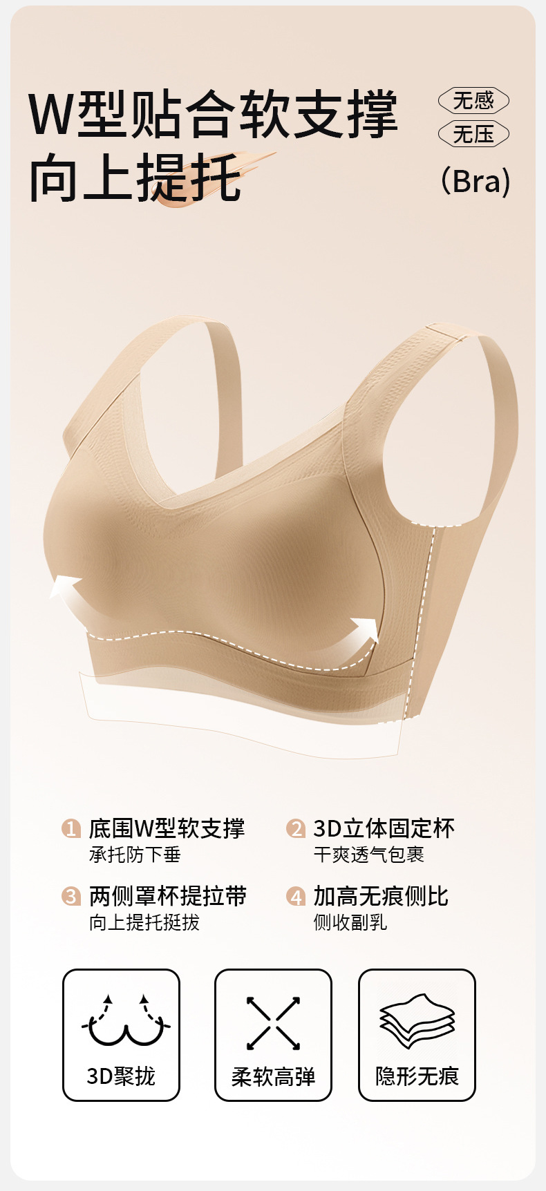 【内搭救星❗️无痕隐形美背内衣】固定式一体杯可机洗,360°环绕式软支撑,丝绸般轻肤肌底,稳定更聚拢,大胸显小聚拢提拉收副乳防下垂无钢圈文胸QQ