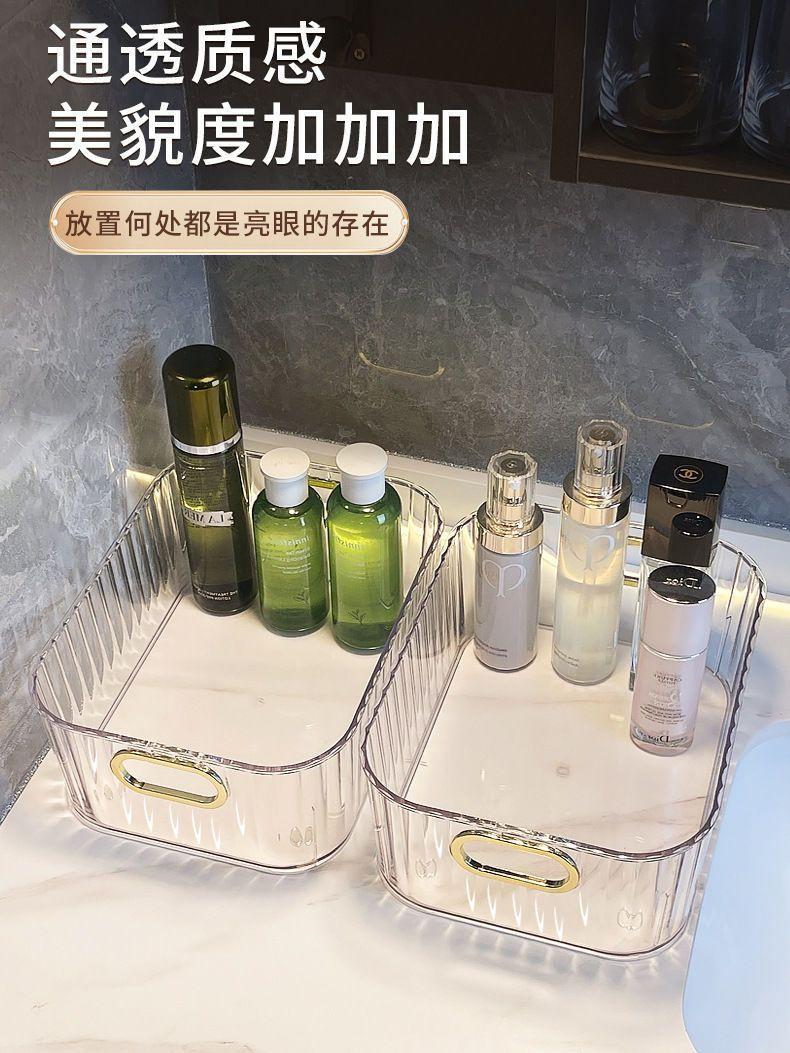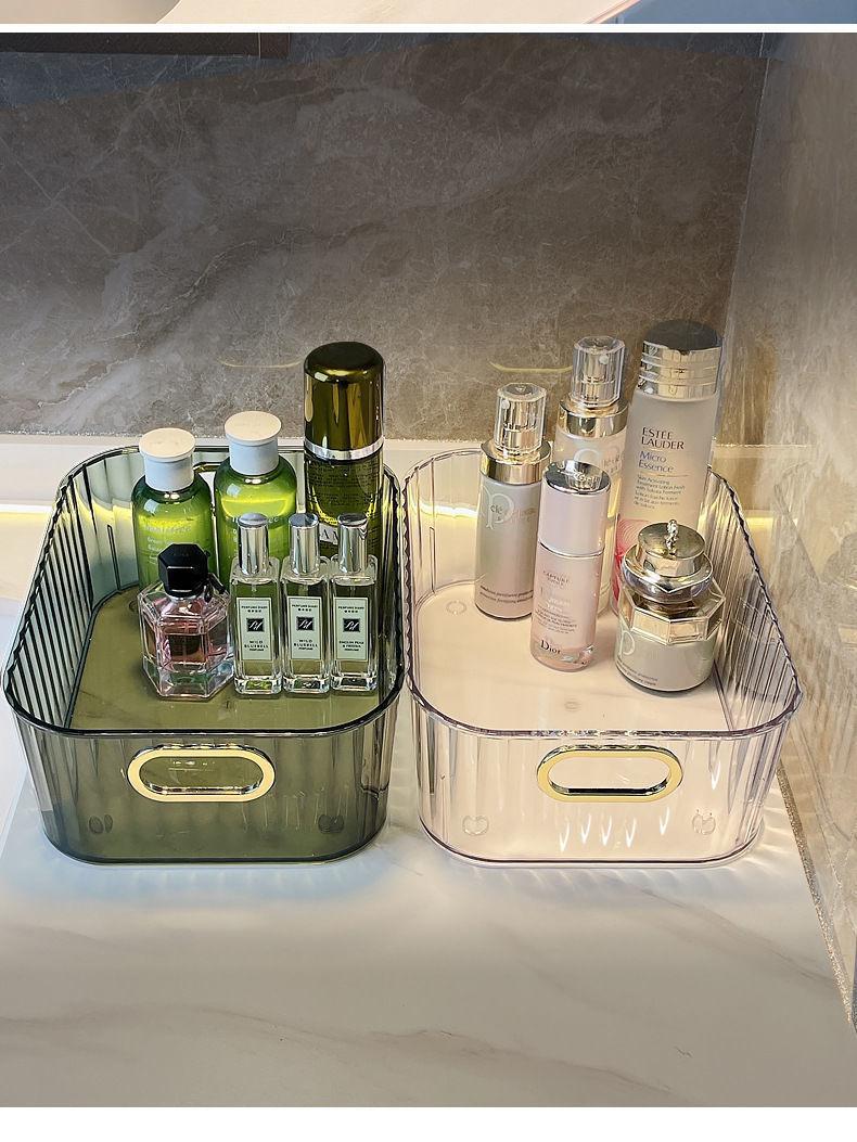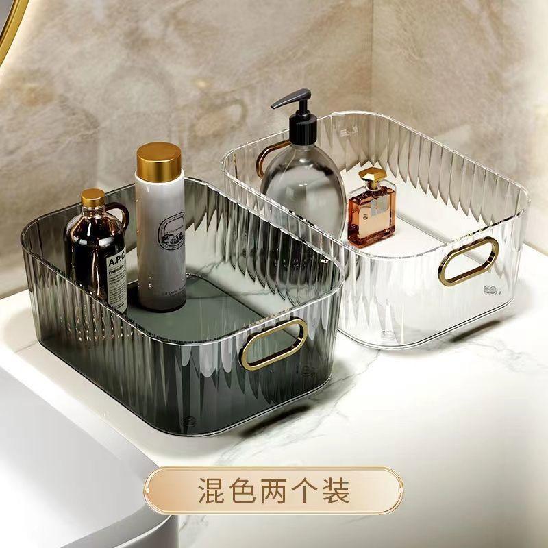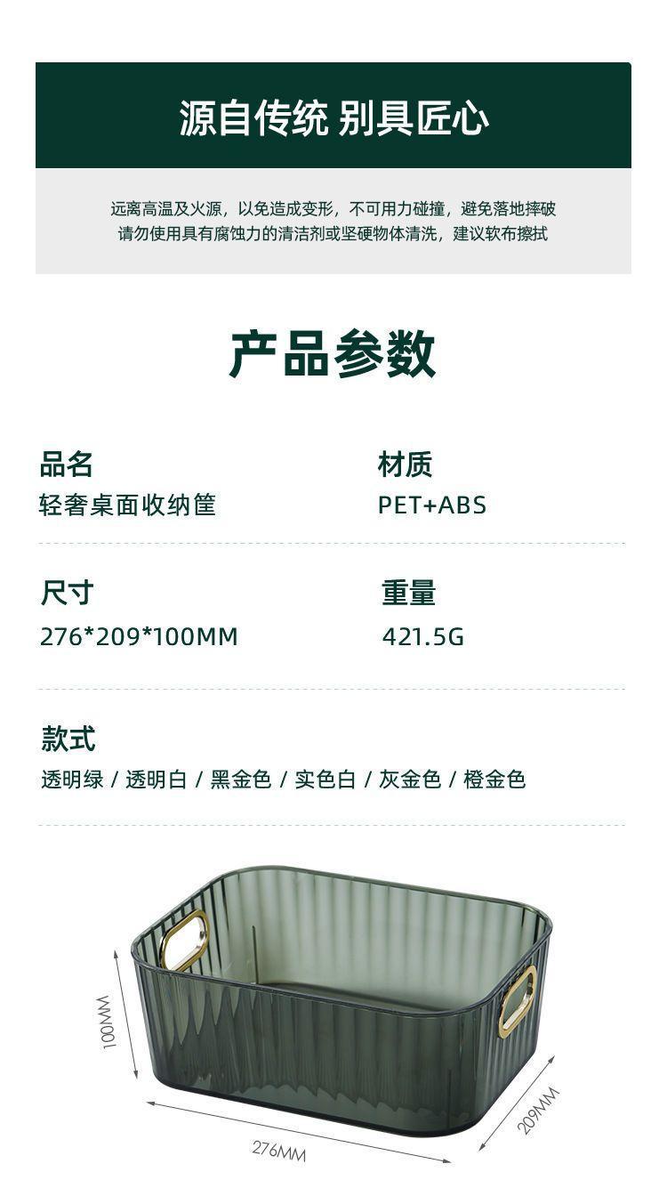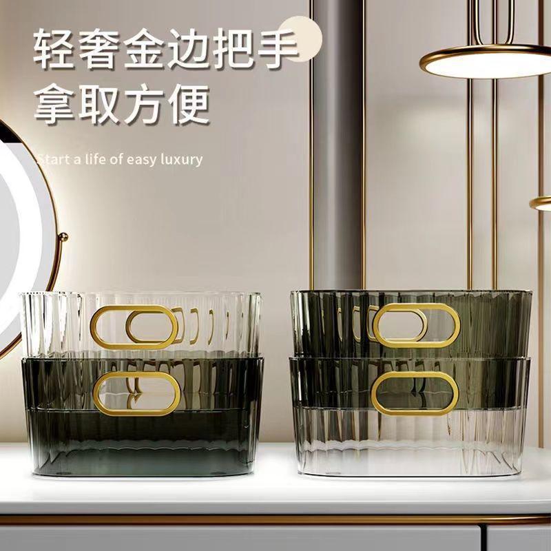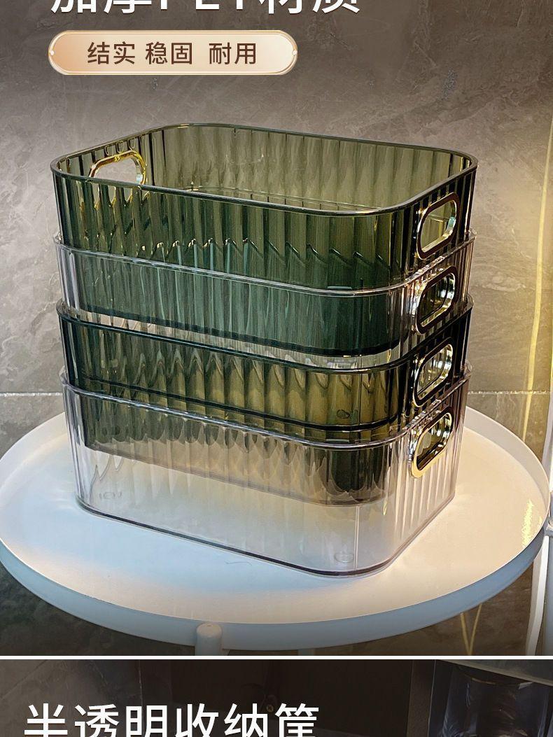 开学季【高颜值轻奢收纳盒】加厚PET材质 结实稳固耐用!通透质感 轻奢配色 桌面收纳神器!亚克力卧室宿舍衣物杂物茶几零食收纳筐Y