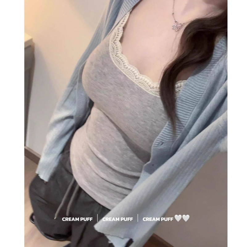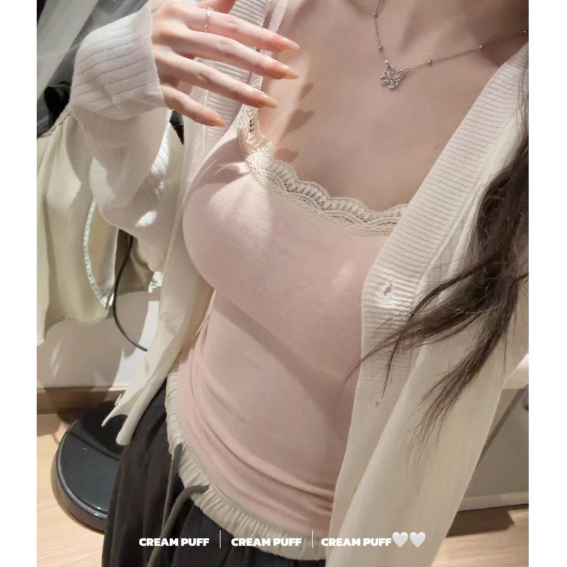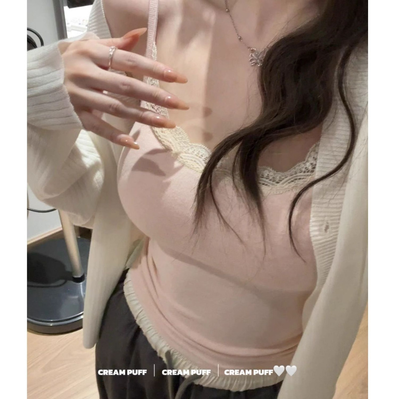 纯欲甜辣蕾丝吊带背心女带胸垫打底内搭外穿修身显瘦无袖辣妹上衣 商品图1