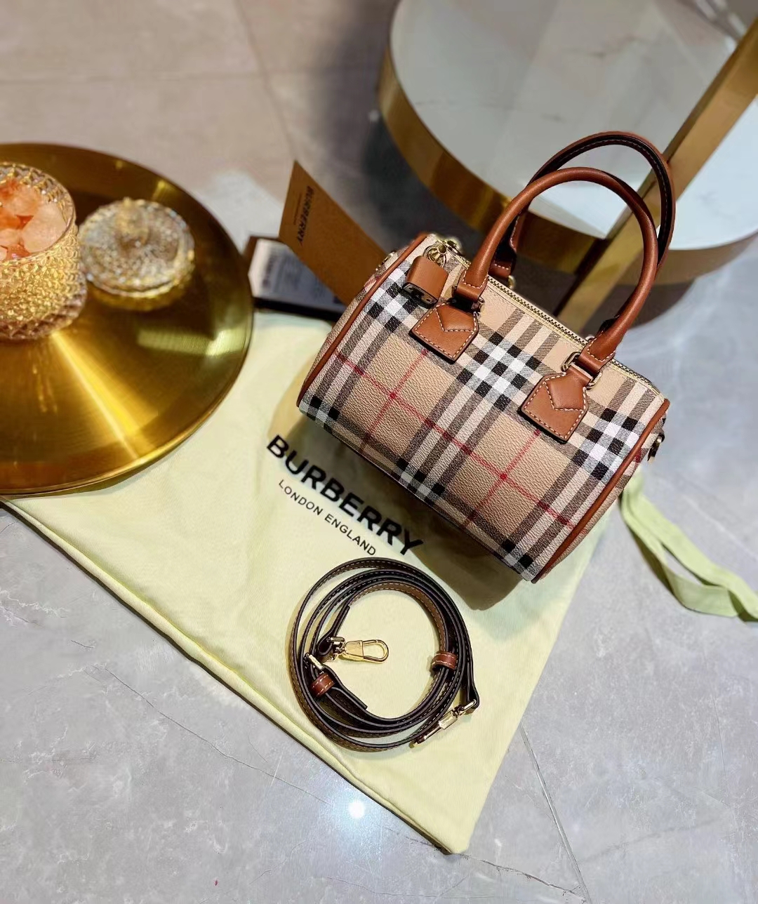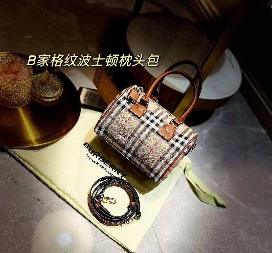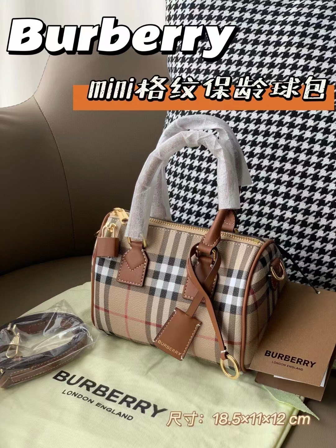 牛货Burerr*巴宝莉新款格纹迷你手提包保龄球包波士顿枕头包
