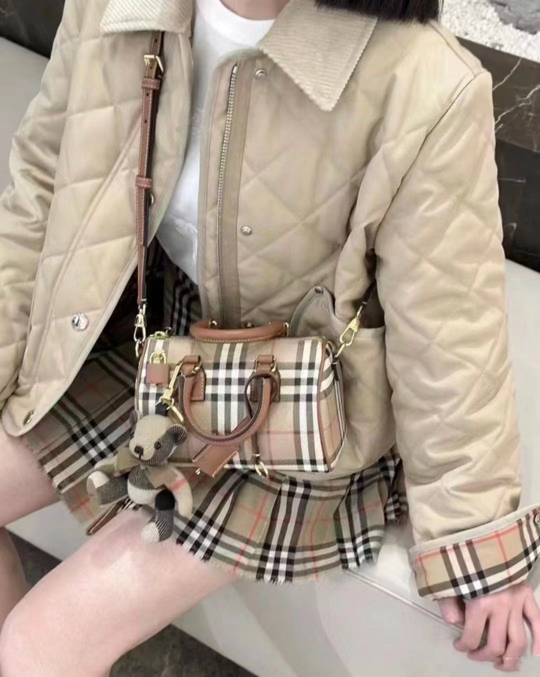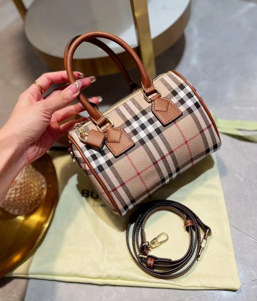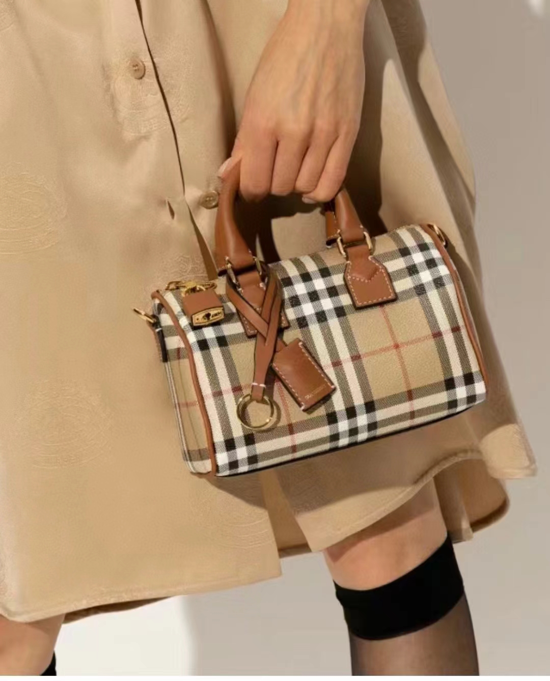 牛货Burerr*巴宝莉新款格纹迷你手提包保龄球包波士顿枕头包
