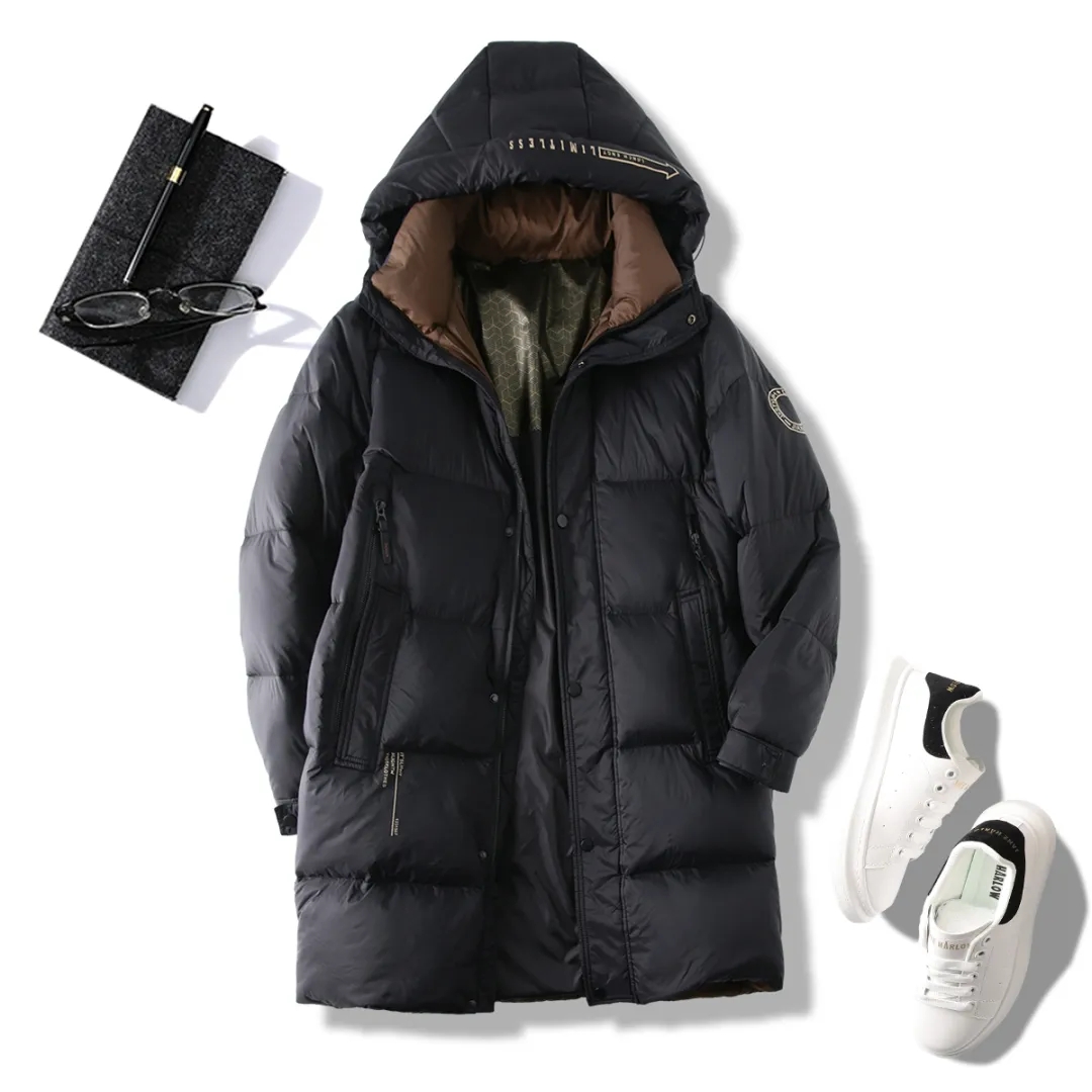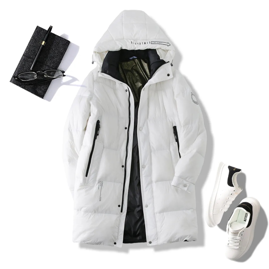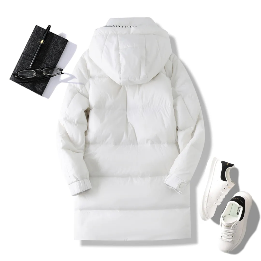 D111704冬季90鹅绒中长款羽绒服加厚保暖防寒连帽冬装休闲外套