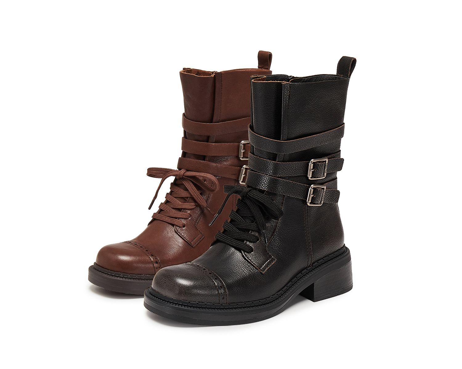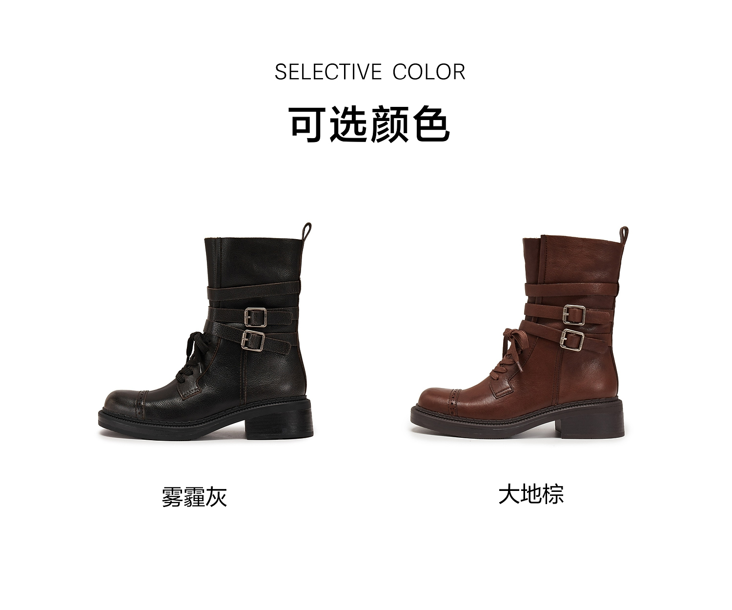 【云粉节】【思加图】BF楼思加图2025新款玫瑰鼓手英伦风马丁靴中靴厚底时装靴女靴EIH02, 吊牌价2490,活动价1858