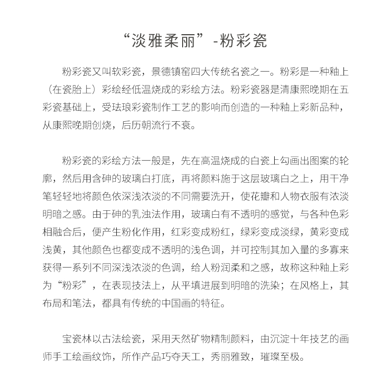 宝瓷林,2008年创立,是一家将传统清宫官窑制瓷技艺,移植于当代家居日用瓷品上的景德镇陶瓷骨干企业,是当下唯一一家代表“千年瓷都-景德镇”走向全球的陶瓷连锁品牌,被誉为陶瓷界的“国酒茅台”。