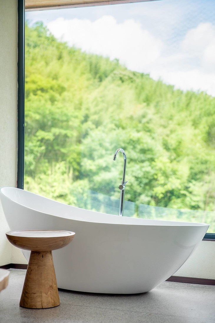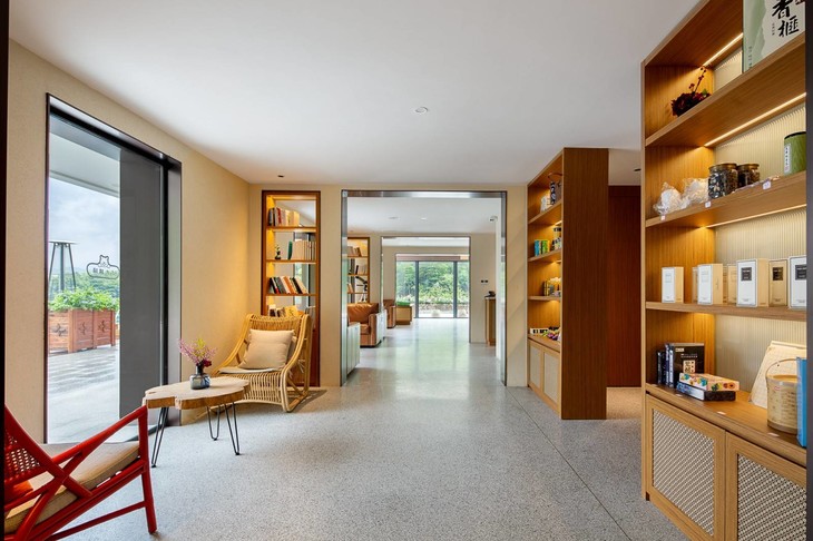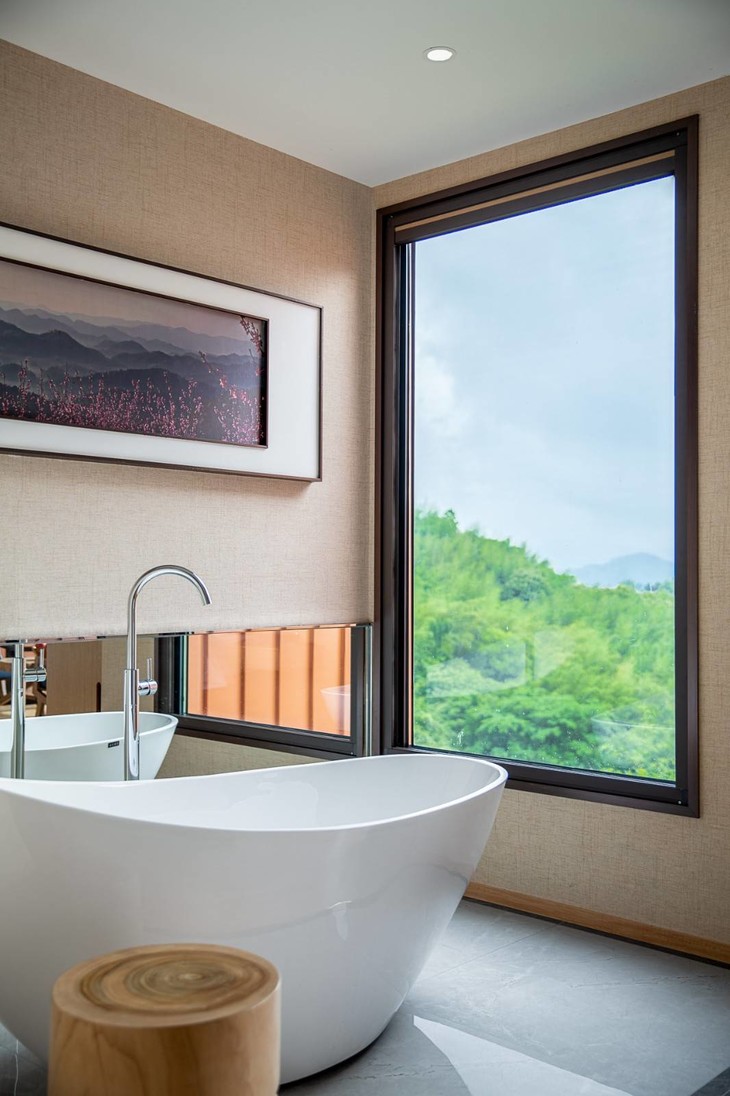 在尧舜养心谷南入口处的半山腰上,几幢掩映在苍翠之中的砖红色独墅就是“尧珈·养心墅”了。浙东名都,竹栖佳处,放下行李,坐在落地窗前泡上一壶香茗“举杯邀山月,壶中满乾坤”