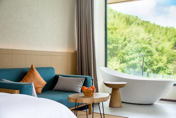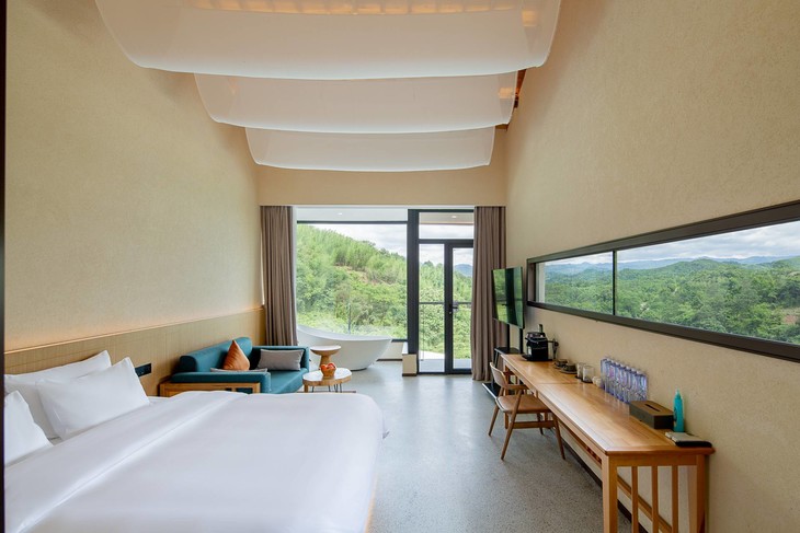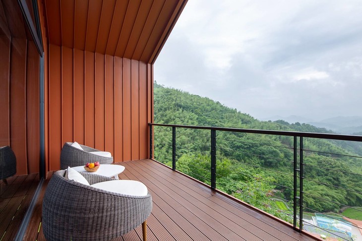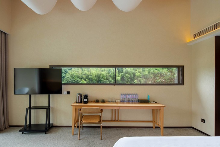 全部房间整体风格简约清新。除去简约的山景大床房/标间,也可以付费升级为其它的房型~
