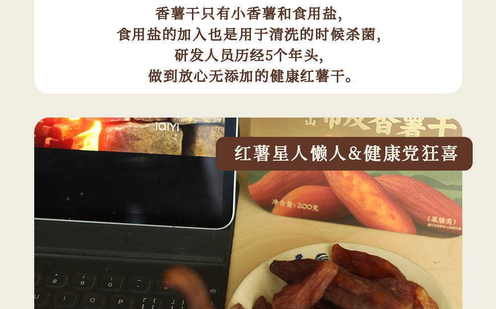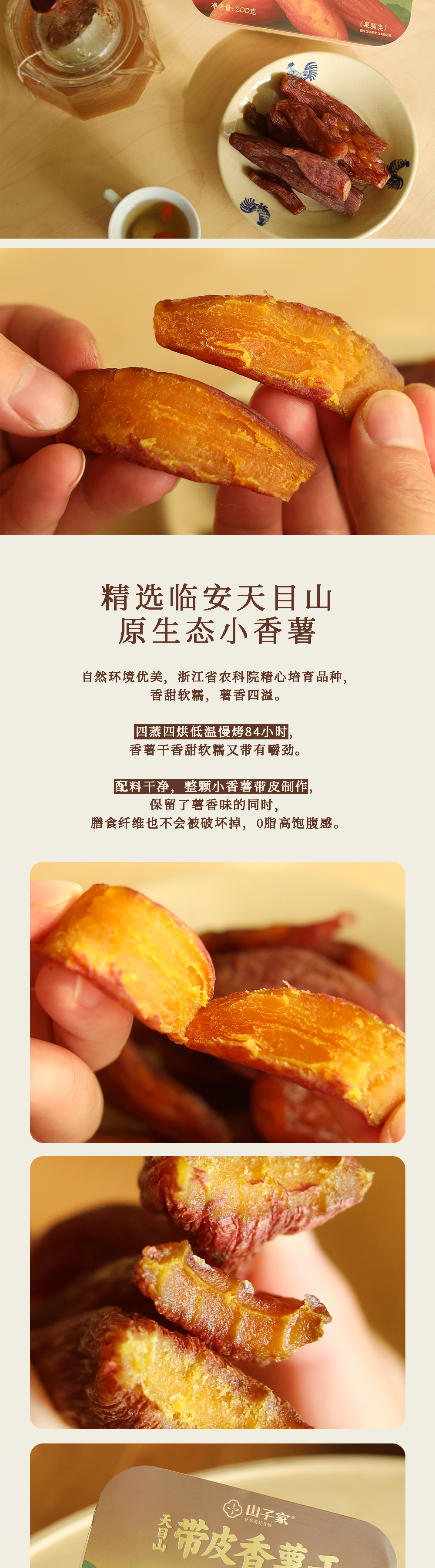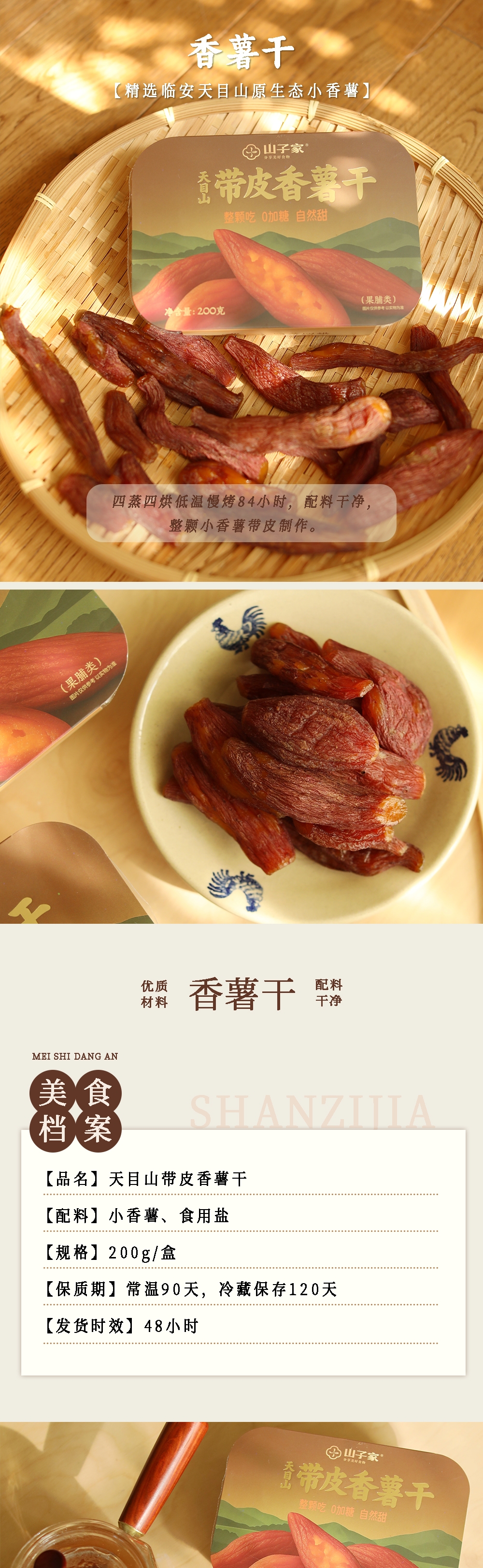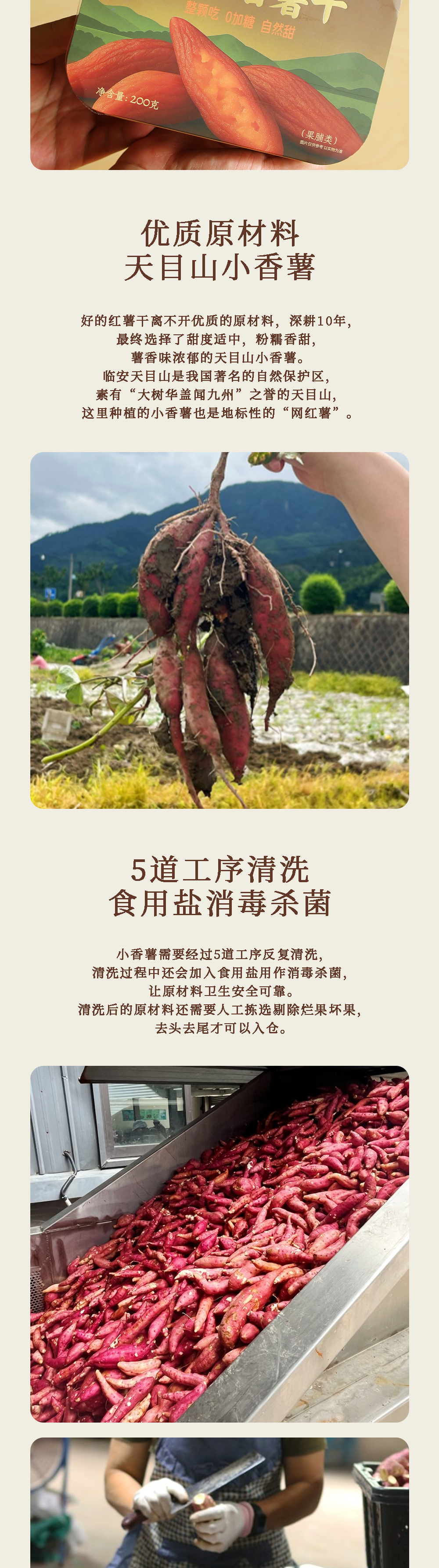 天目山带皮小香薯干#香甜软糯无筋丝不塞牙,四蒸四烘低温慢烤,5斤原料出1斤成品,配料干净小零食