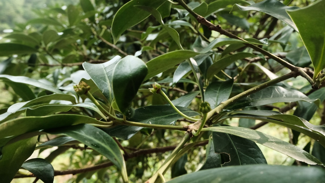 杨围村是长流村下辖的自然村,与仙娘溪临近,八角树就生长在村子周围的半山腰,都是三十多年前种下的,这里也混杂了其他的茶籽油树、橄榄树、青梅树,这些树木都是相对粗生的种类,所以平常管理很少,基本处于野生的状态。只需要在采摘之前砍一次草,方便人的走动。八角树都比较高大,所以采摘起来比较有难度。