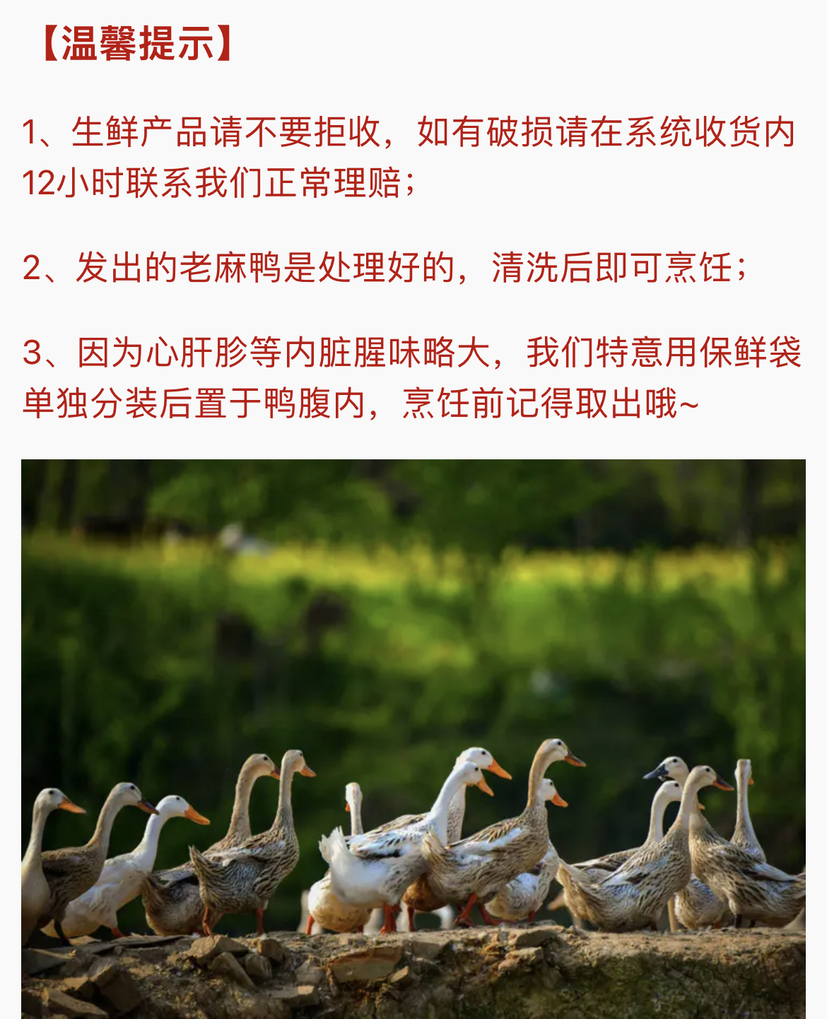 【规格】活鸭3斤;处理后(含心肝胗)约2斤
