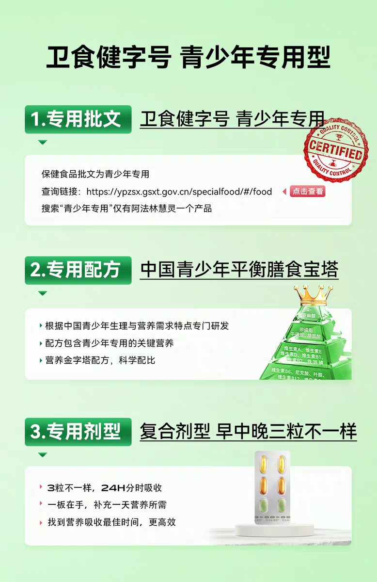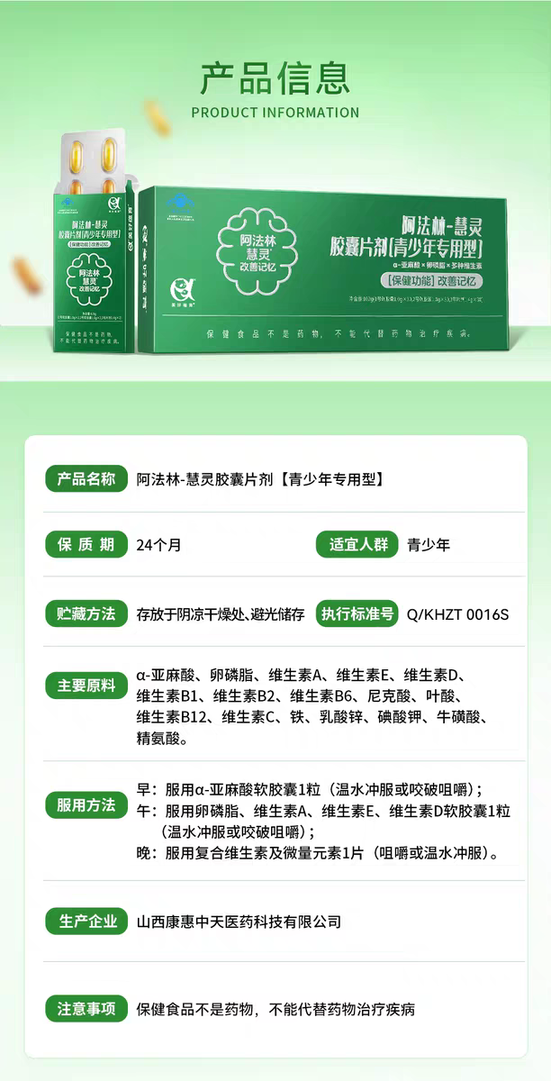 阿法林-慧灵胶囊片剂[青少年专用型]改善记忆