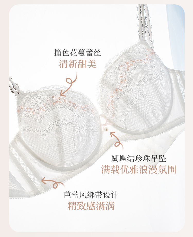 奶糖派茶歇舞会蕾丝文胸3/4杯圆圆胸聚拢承托性感超薄显瘦内衣女