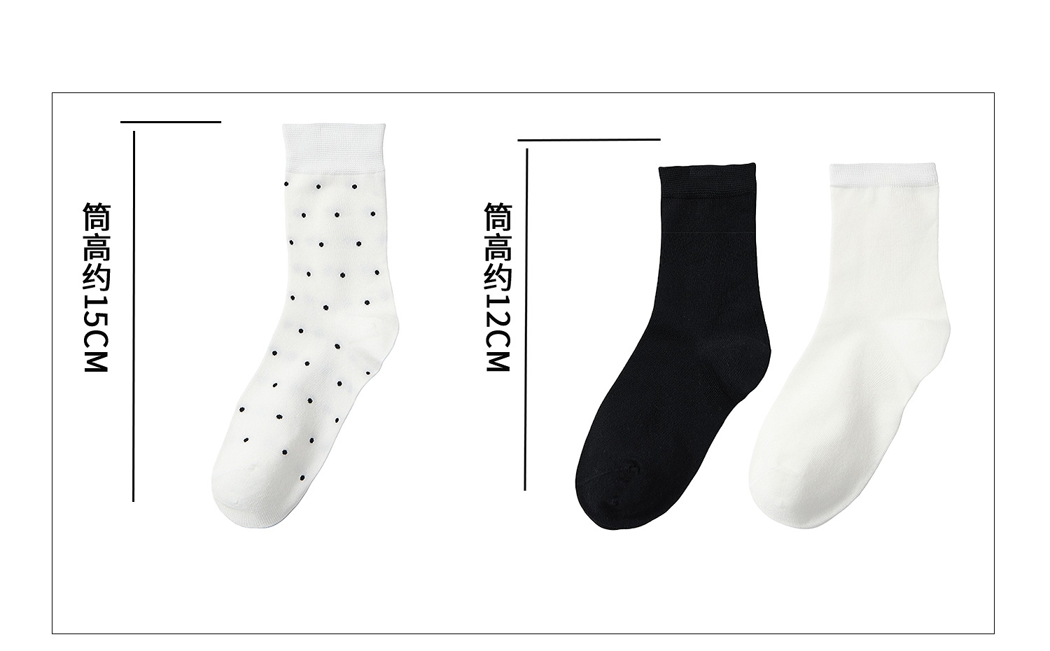 棉仓366861001-中筒袜2双装 7A抗菌新疆长绒棉弹力透气螺纹袜子男黑白纯色