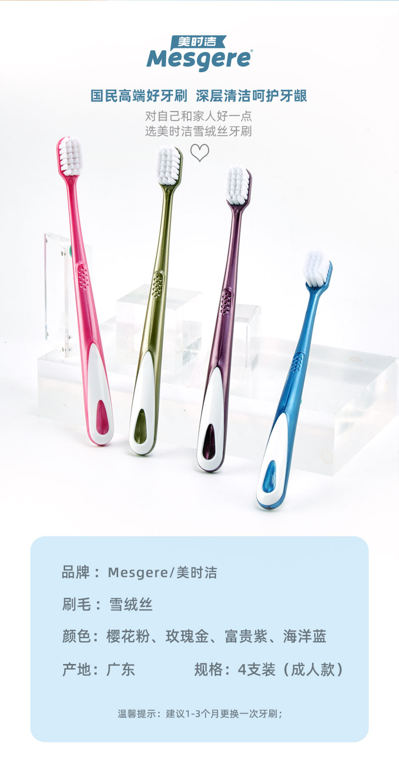 美时洁 雪绒丝宽口万毛牙刷 4支/板