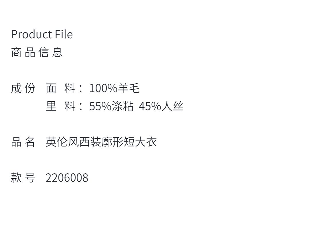 定制—舒适新裁、英伦风西装廓形大衣- 通勤百搭气质外套 2206008