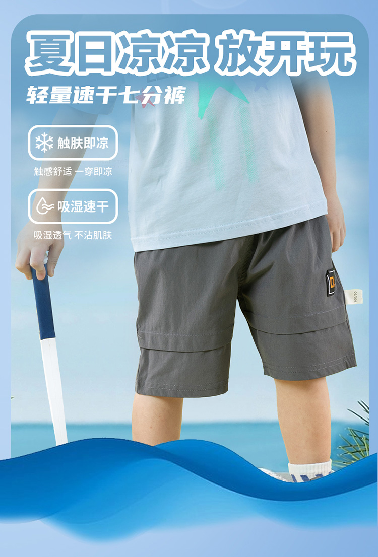 【工装风速干凉感短裤】贝贝怡2025夏季新款男童宽松透气休闲短裤运动裤