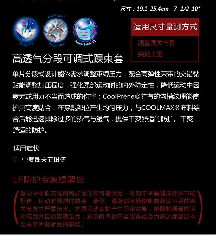 LP护具 高透气分段可调式踝束套 LP757CA 扭伤防护 干爽透气