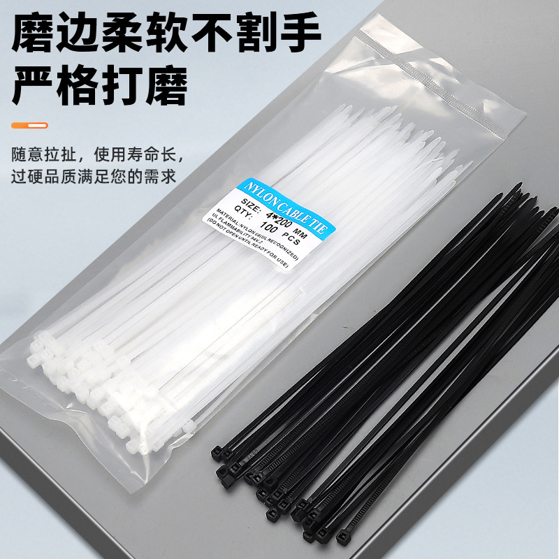 尼龙 束带扎带黑色 绑带100根/袋自锁式扎带国标3*200宽2.5mm