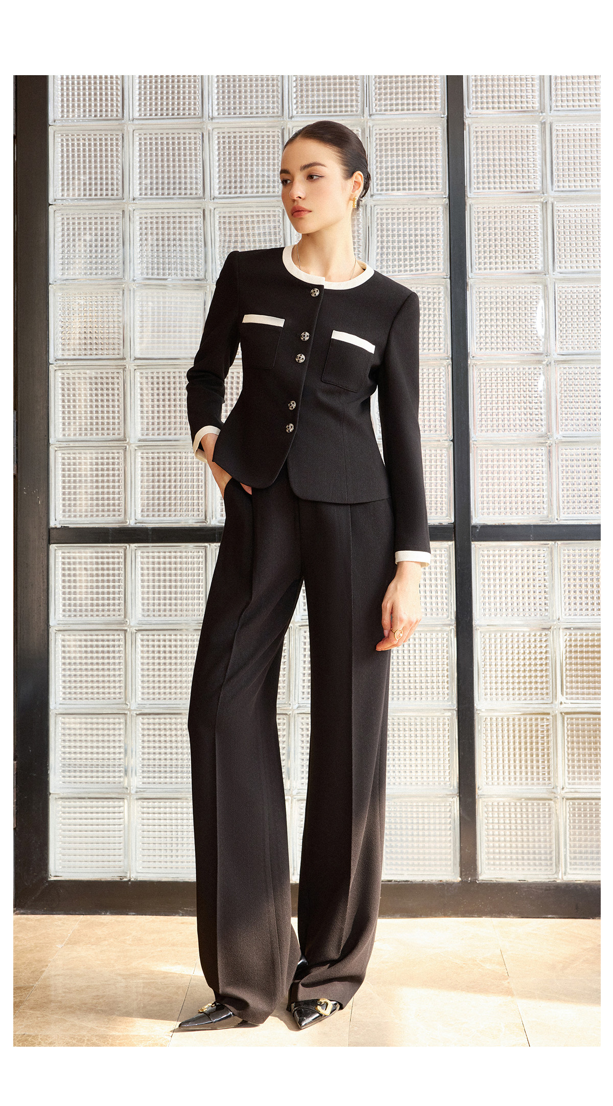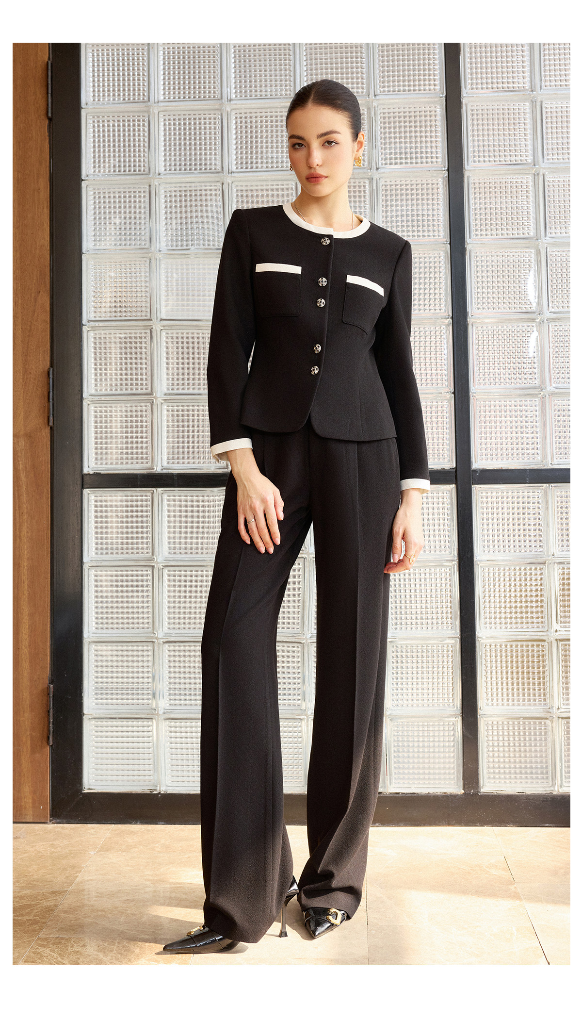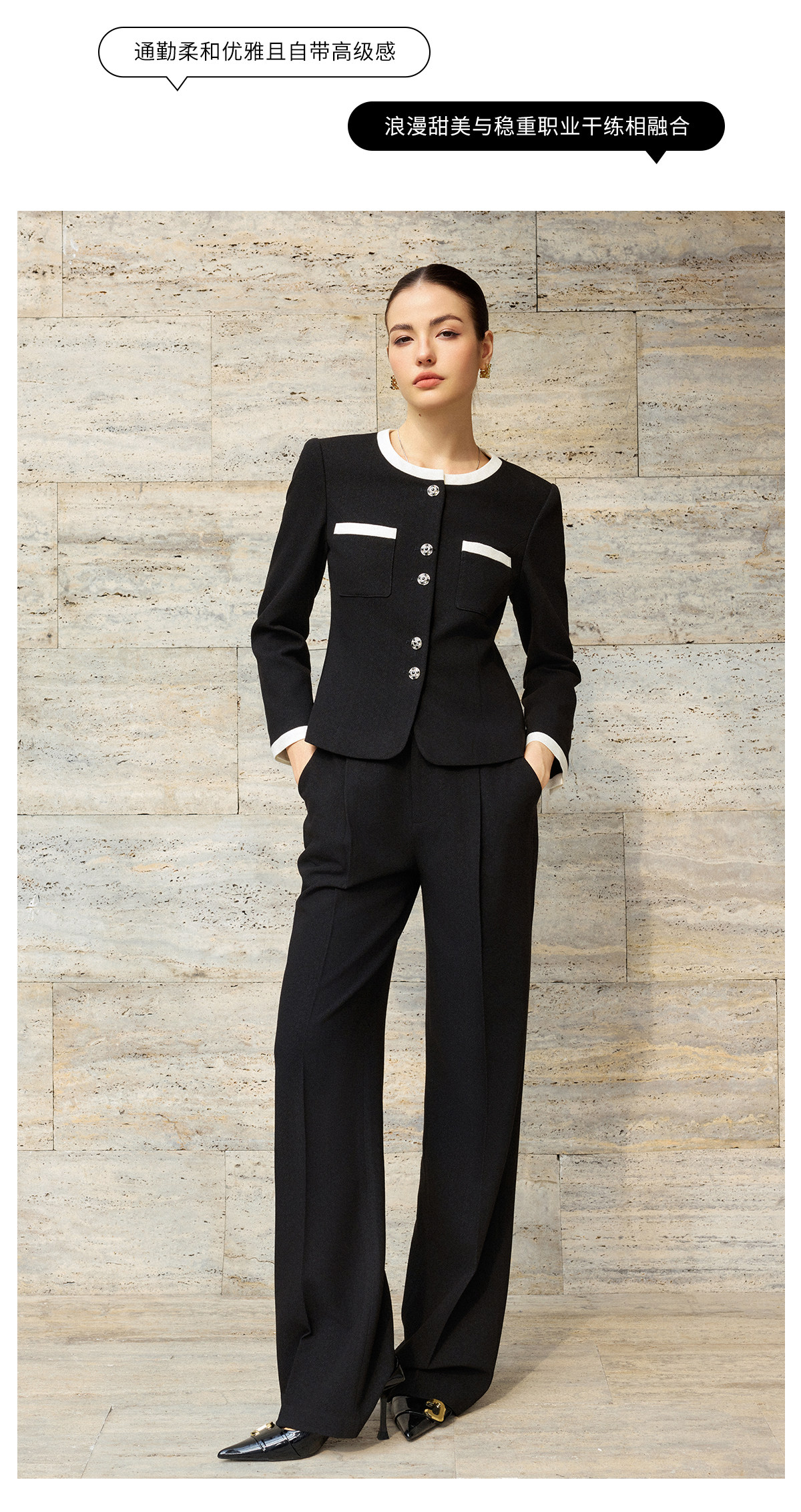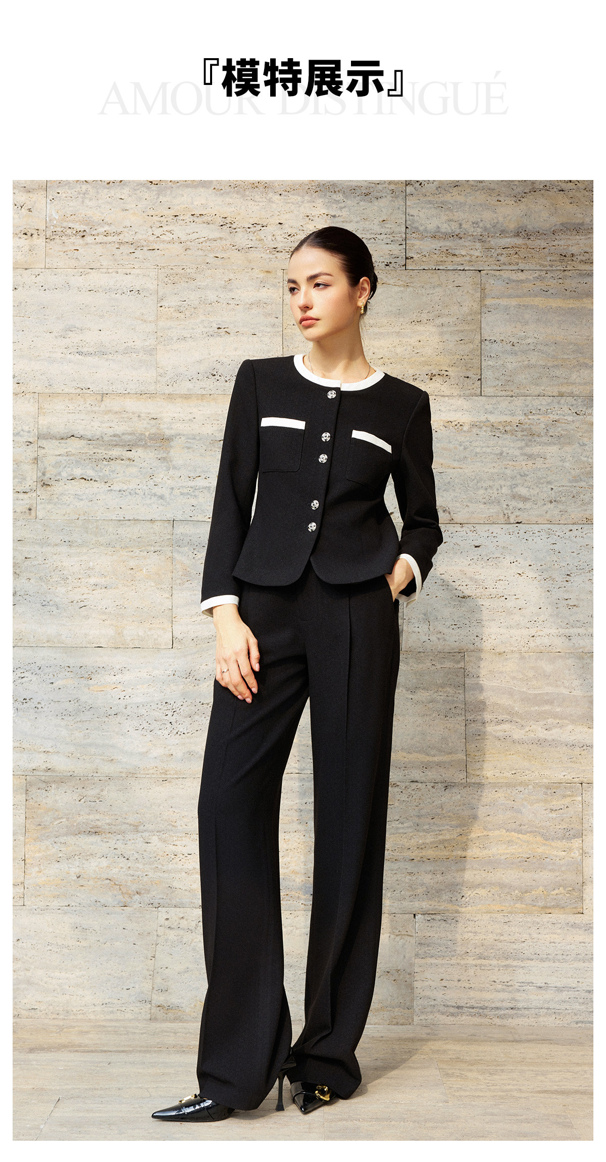 AD酒店经理职业套装女长袖西装套装黑色气质短外套2026新款直筒裤