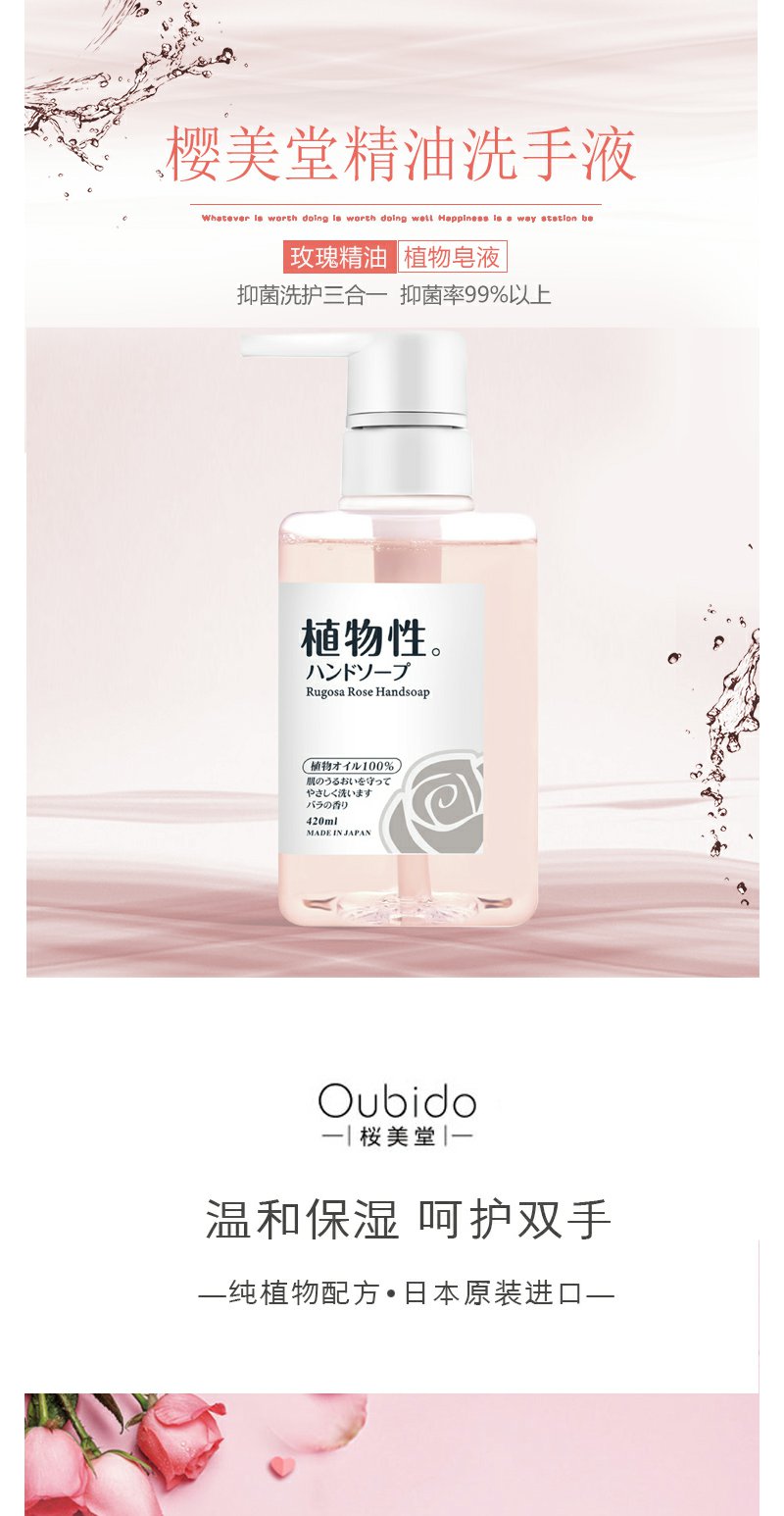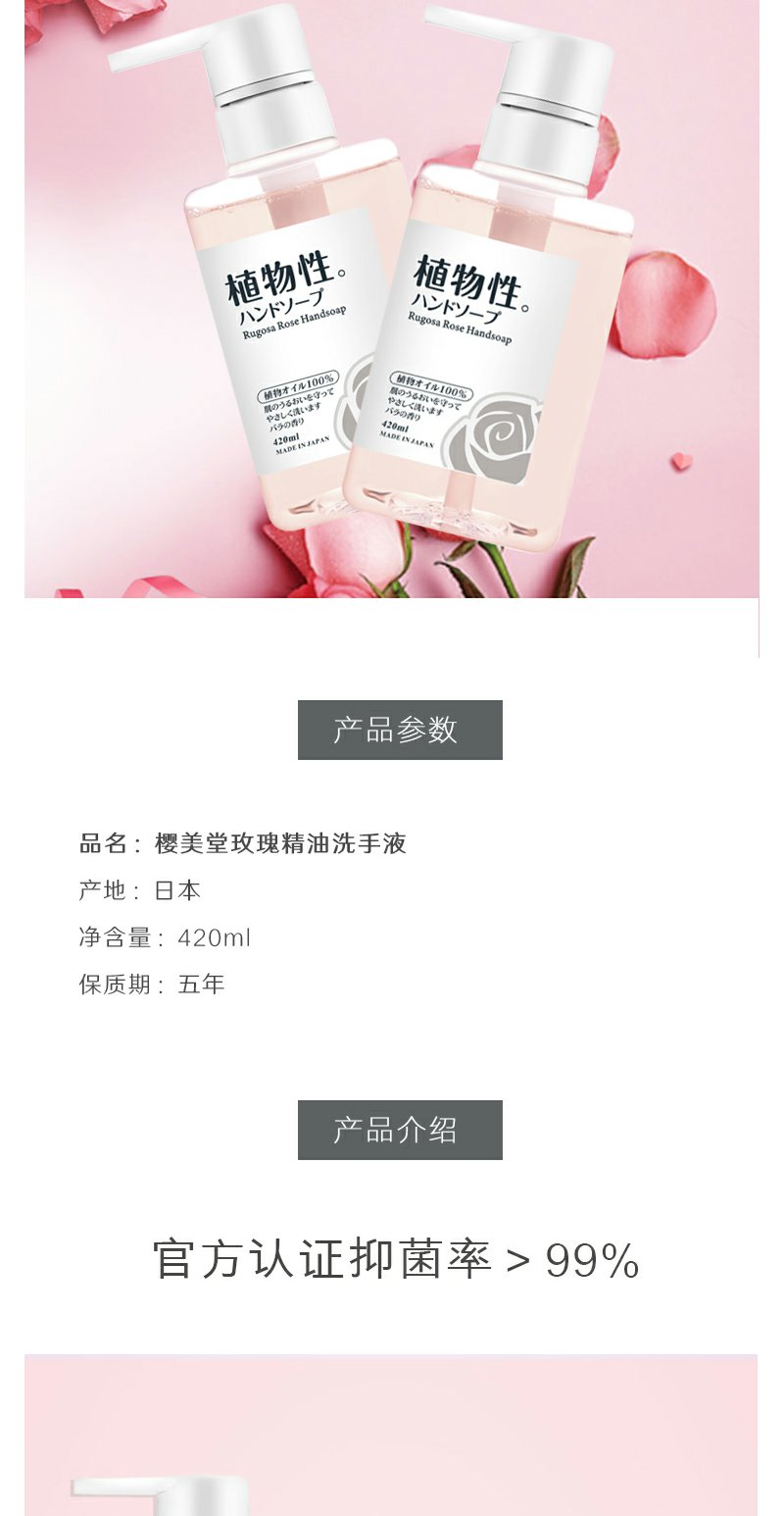 【BF】樱美堂玫瑰精油抑菌洗手液植物配方易清洗日本原装进口清洁保湿