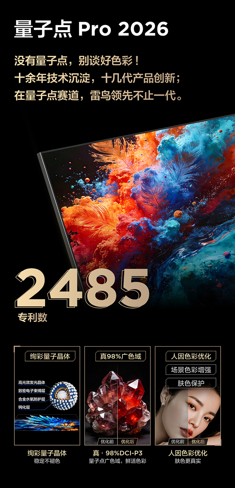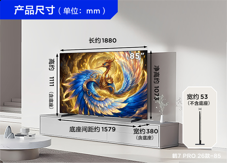 【FFALCON雷鸟】 85鹤7 PRO 26款 85英寸 极景QD-MiniLED 蝶翼华曜屏 万象分区 平板电视机85R79A Pro