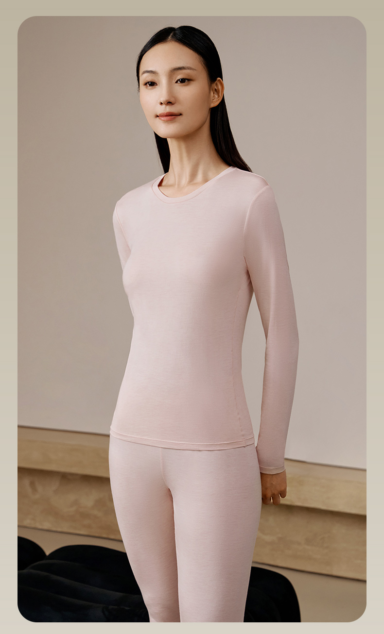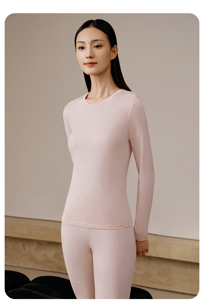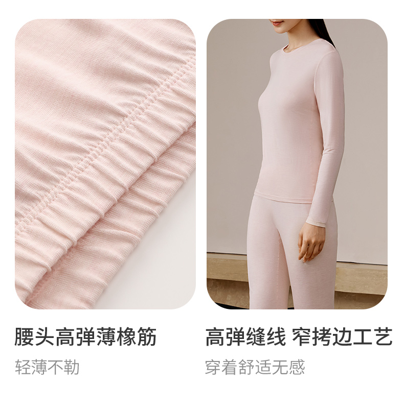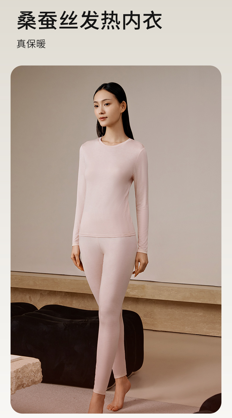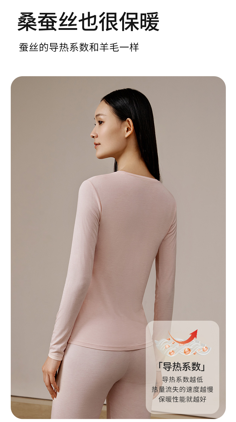 【暖暖保暖衣】桑蚕丝保暖内衣女微弹长袖圆领秋衣秋裤套装金三塔 NYFED102