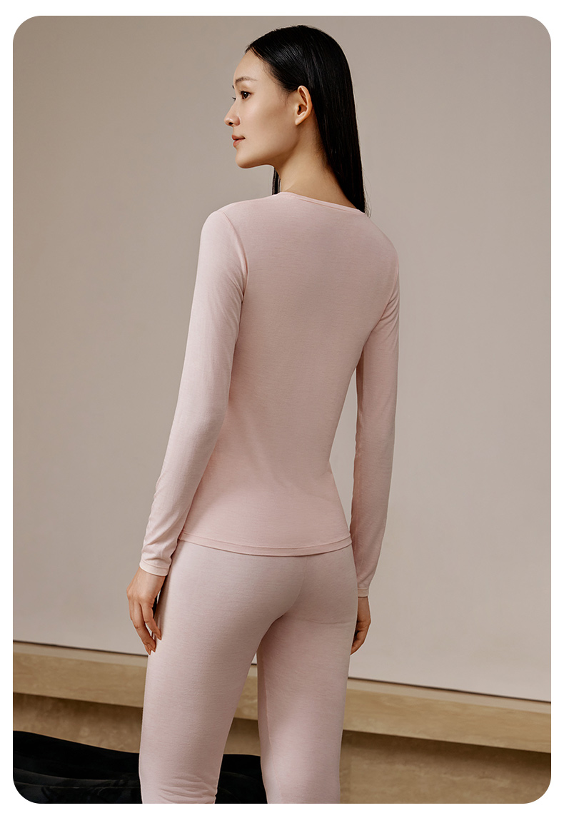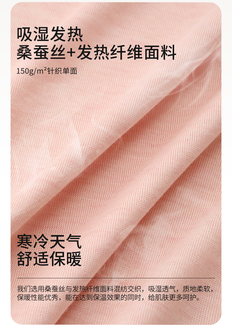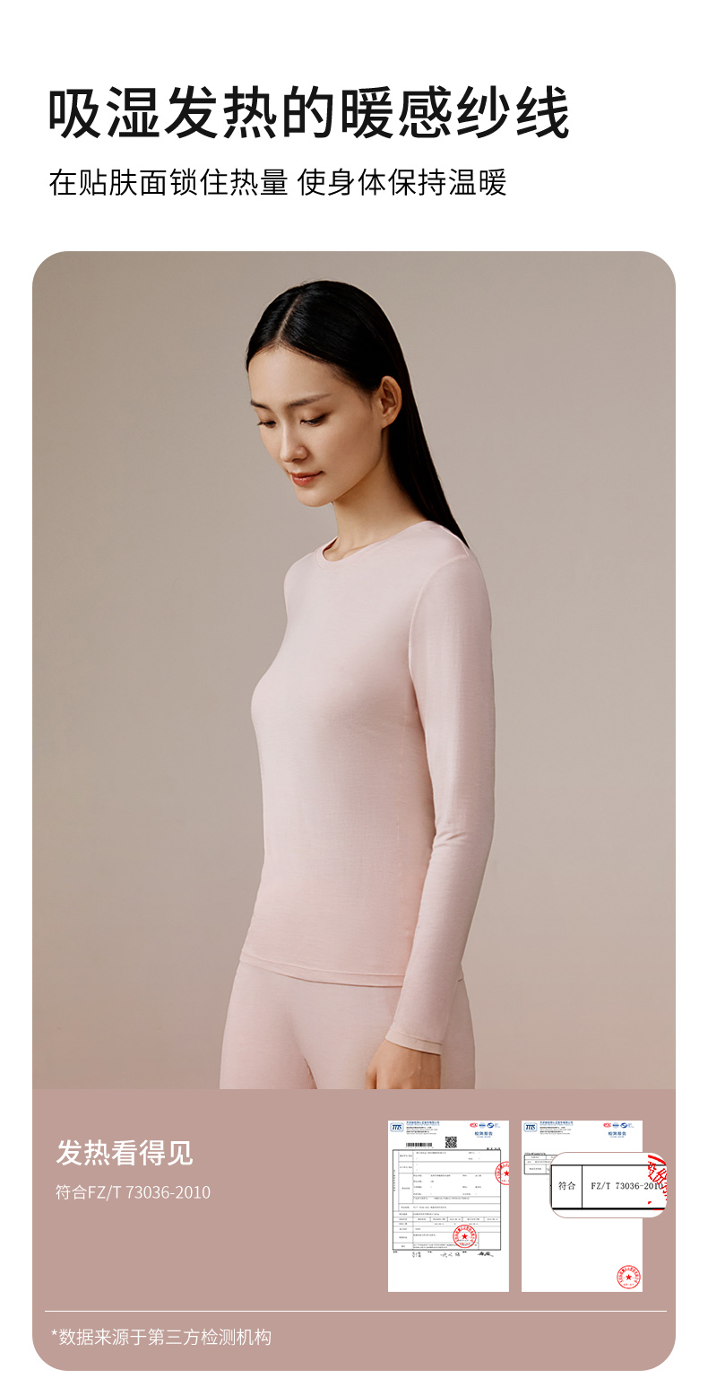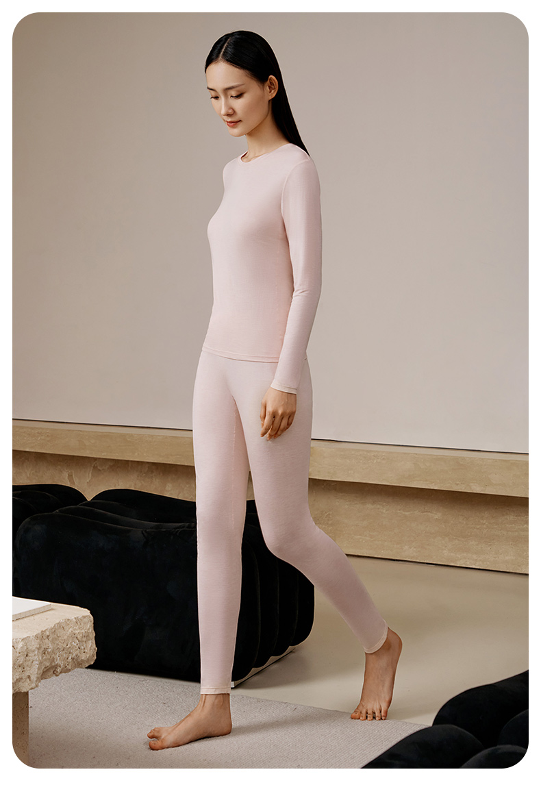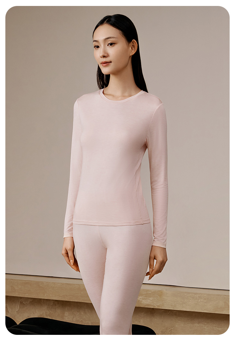 【暖暖保暖衣】桑蚕丝保暖内衣女微弹长袖圆领秋衣秋裤套装金三塔 NYFED102