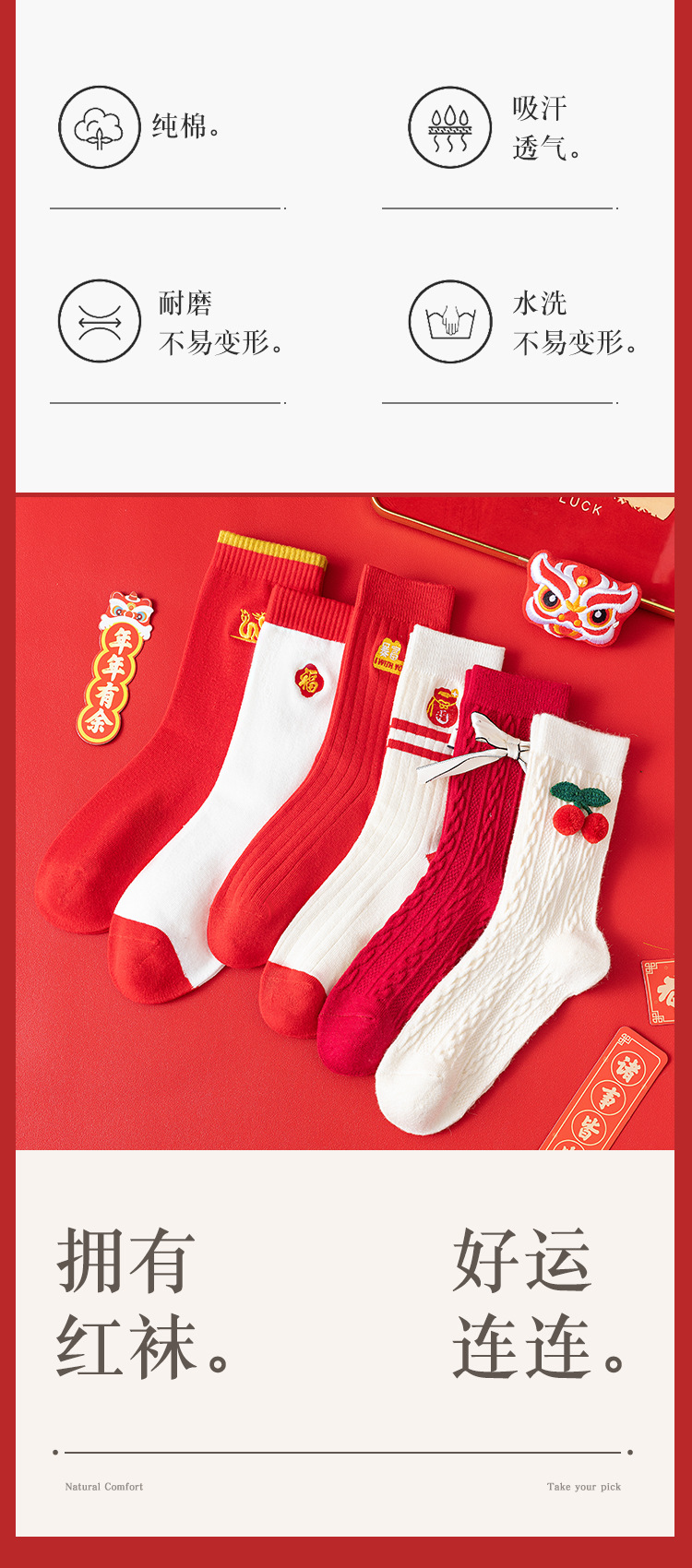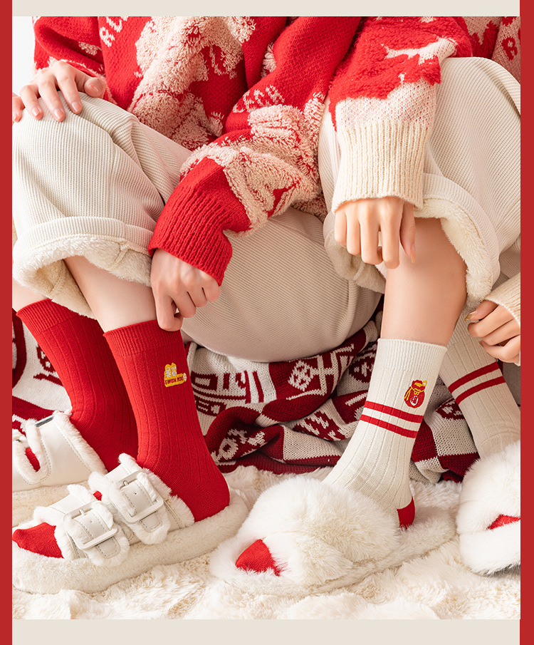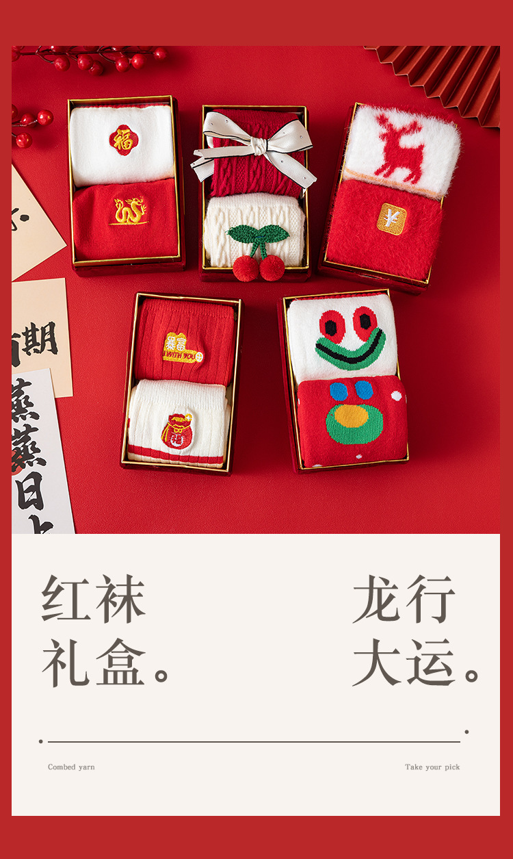 【穿红袜行好运❗️新年喜庆棉袜礼盒】马年好寓意,好运满满,财运滚滚❗️本命年袜子男女潮袜秋冬情侣袜中筒袜,父亲节礼物新年礼盒年货礼盒