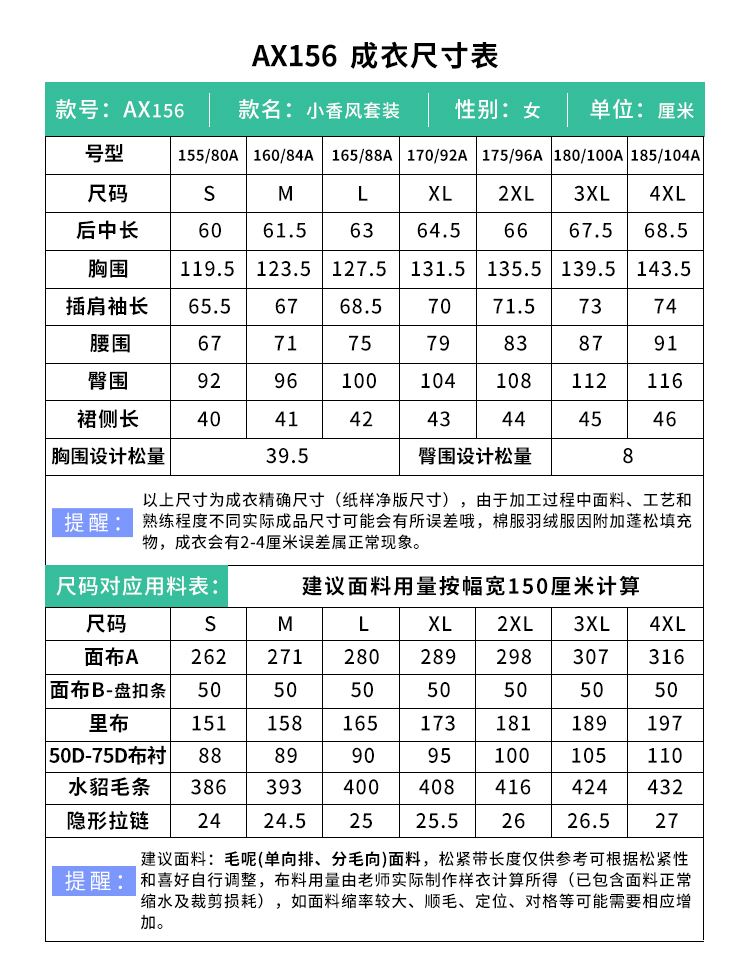 裁缝学苑AX156秋冬小香风套装纸样女装羊毛呢外套半身裙两件套样板