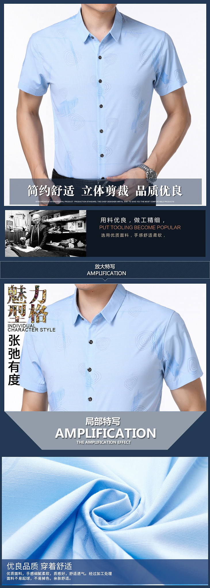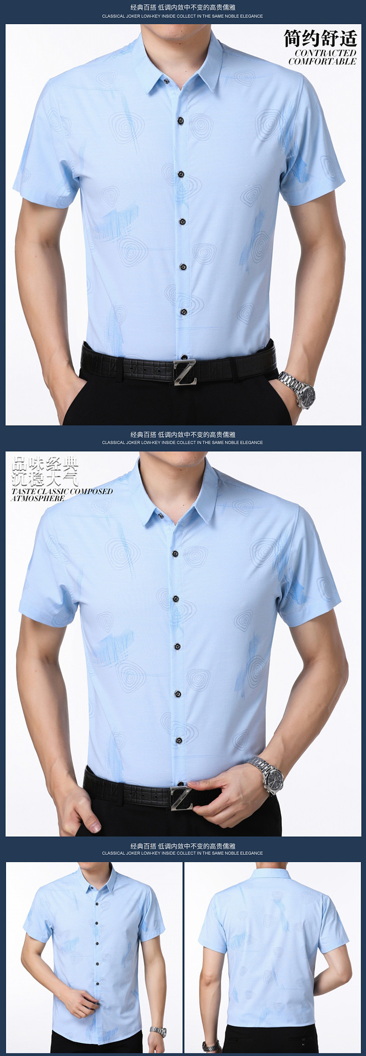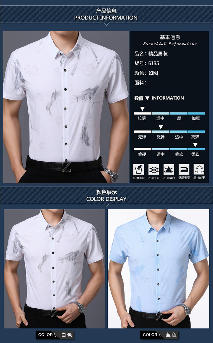 【服饰鞋包】。夏季中年衬衫男士短袖衬衣宽松翻领中老年宽松男薄款爸爸装