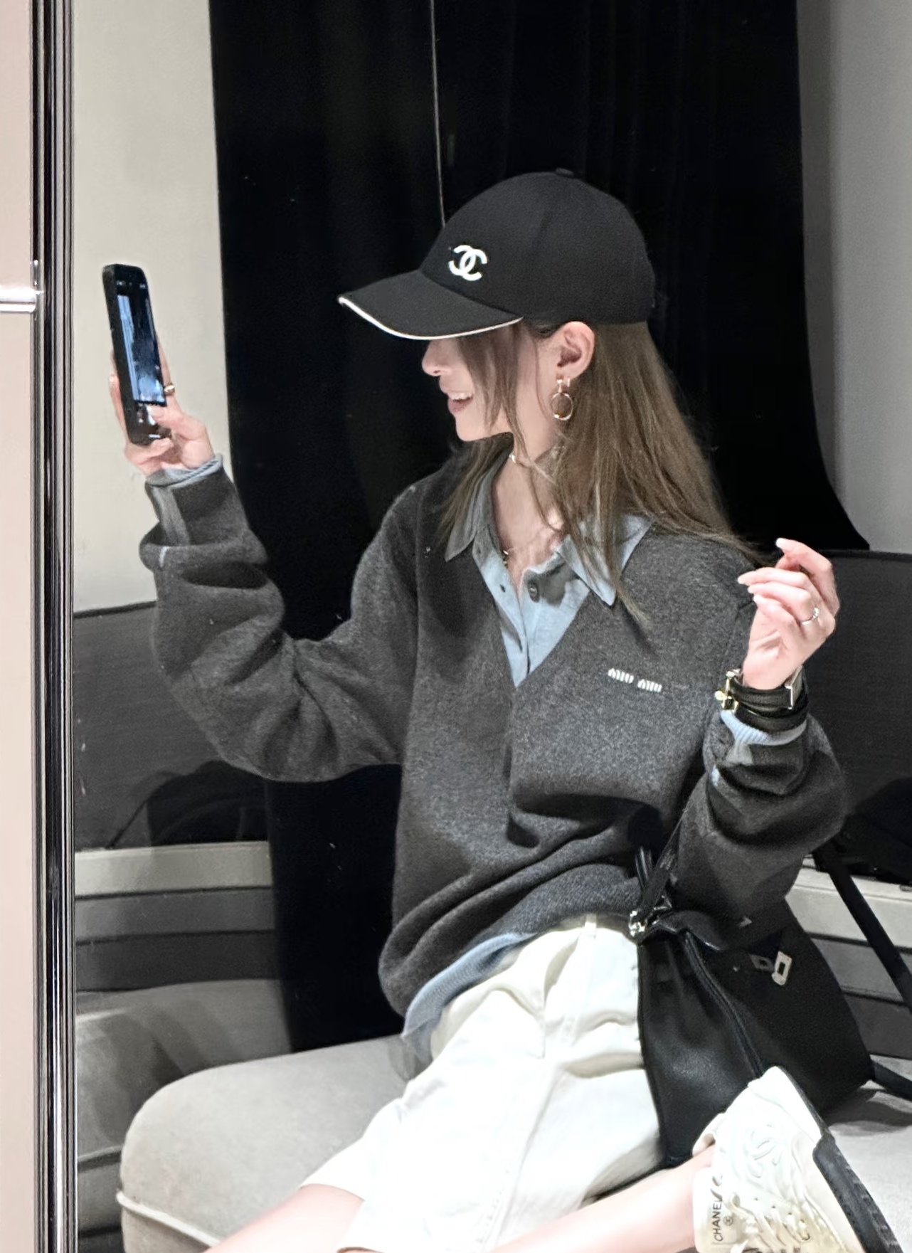 又甜又酷小香鸭舌帽~黑白字母太经典啦~纯棉材质,鸭舌设计够大够长,圆脸宽脸完全遮盖~后设计两个扣可以调节,属于硬顶,戴上还显个头高哈~